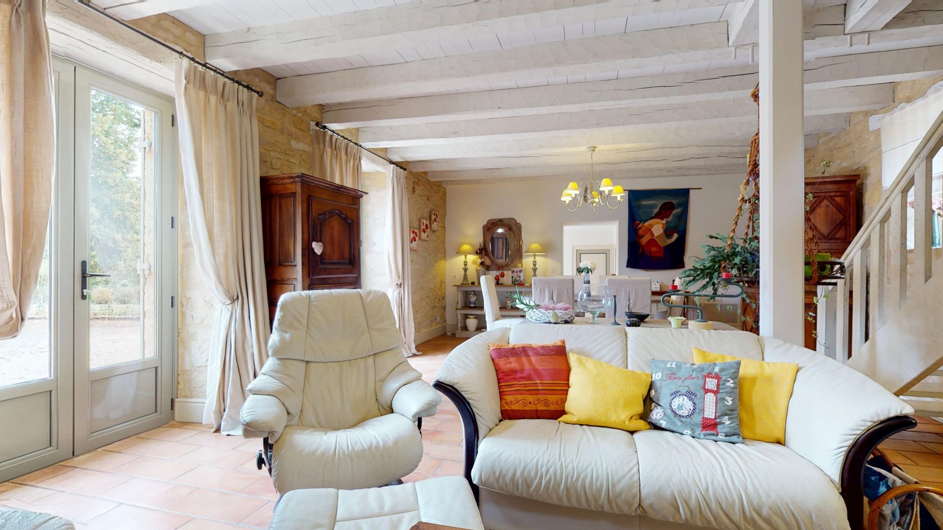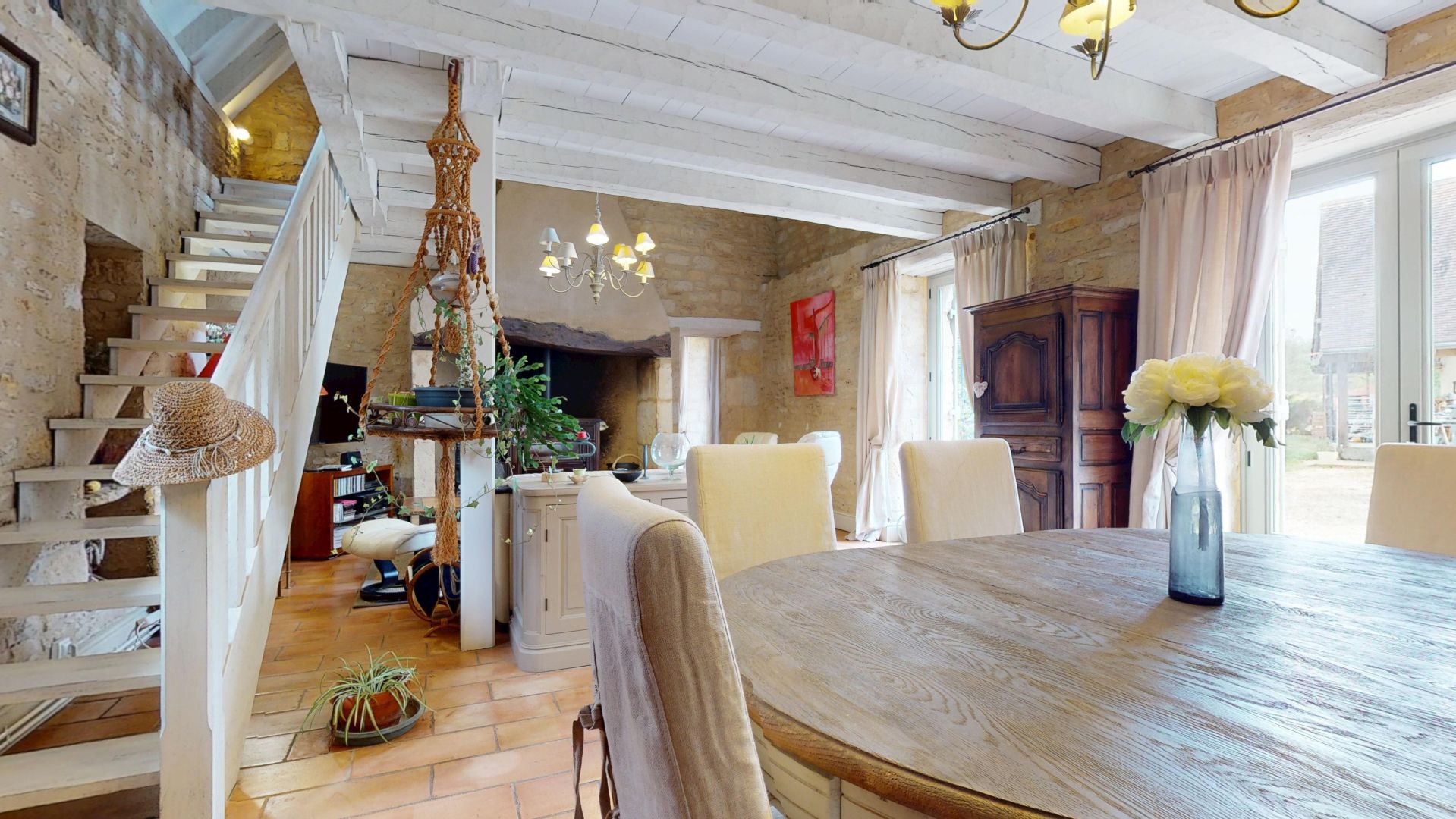 Visite 3D disponible sur demande. Située sur les hauteurs de la vallée de la Dordogne, cette authentique propriété en pierre séduit par son charme, sa luminosité et la qualité de son environnement. Elle bénéficie d’un emplacement recherché, à proximité du Château de Milandes et du village de Saint-Cyprien, qui dispose de tous les commerces et services. La maison principale, élevée sur deux niveaux, offre au rez-de-chaussée une cuisine conviviale, une grande pièce à vivre lumineuse, une chambre ainsi qu’une salle de bain. À l’étage, un vaste palier pouvant faire office de bureau ou d’espace détente dessert trois chambres et une salle d’eau. La propriété comprend également une belle grange en pierre, en très bon état, offrant de nombreuses possibilités d’utilisation selon vos projets. L’ensemble des bâtiments est en pierre et parfaitement entretenu. Le chauffage est assuré par une pompe à chaleur, garantissant confort et performance énergétique. La maison est lumineuse, saine et agréable à vivre, dans un cadre paisible sans être isolé. Cette propriété de caractère, située au cœur du Périgord Noir, conviendra aussi bien pour une résidence principale que secondaire, ou pour un projet familial, dans un secteur réputé pour sa qualité de vie et son patrimoine exceptionnel. Pour tout renseignement complémentaire ou pour organiser une visite, je reste à votre disposition. Les informations sur les risques auxquels ce bien est exposé sont disponibles sur le site Géorisques: www.georisques.gouv.fr