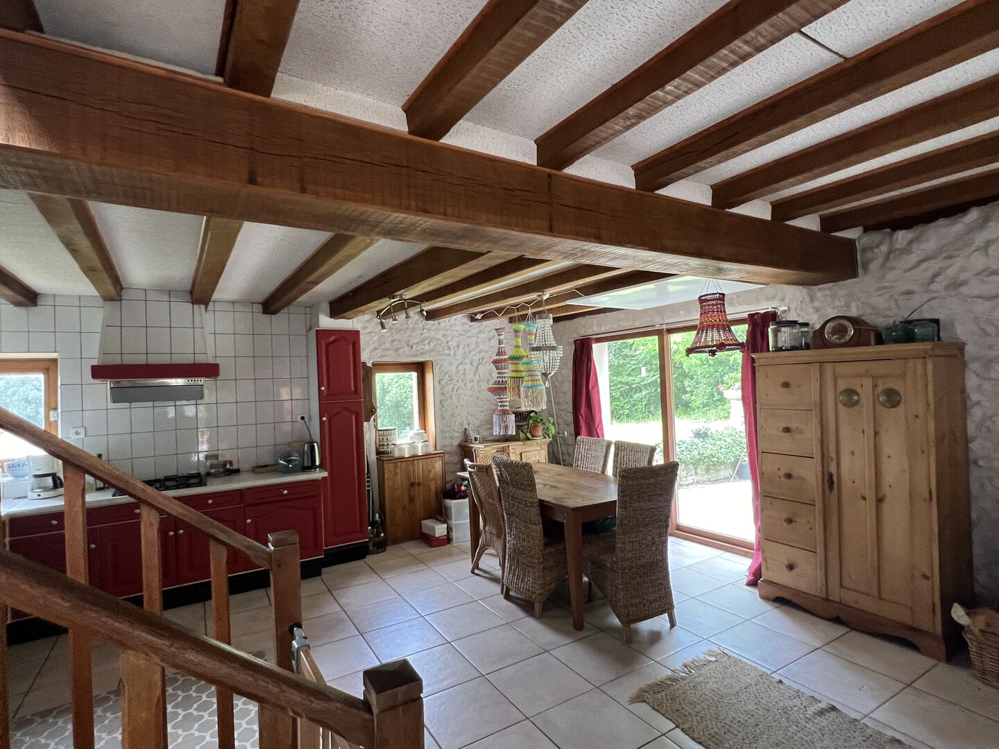 - Pièce(s) à vivre de 53 m² avec cuisine équipée sur séjour / poêle bois.