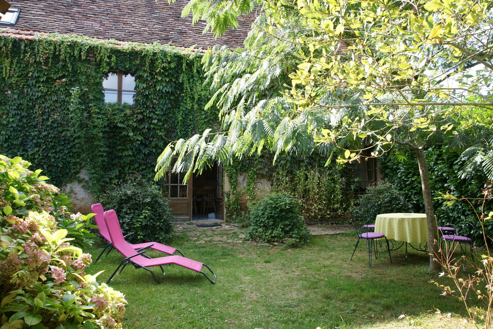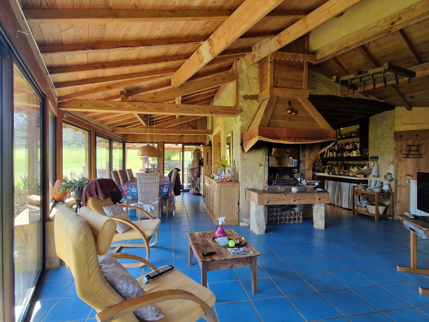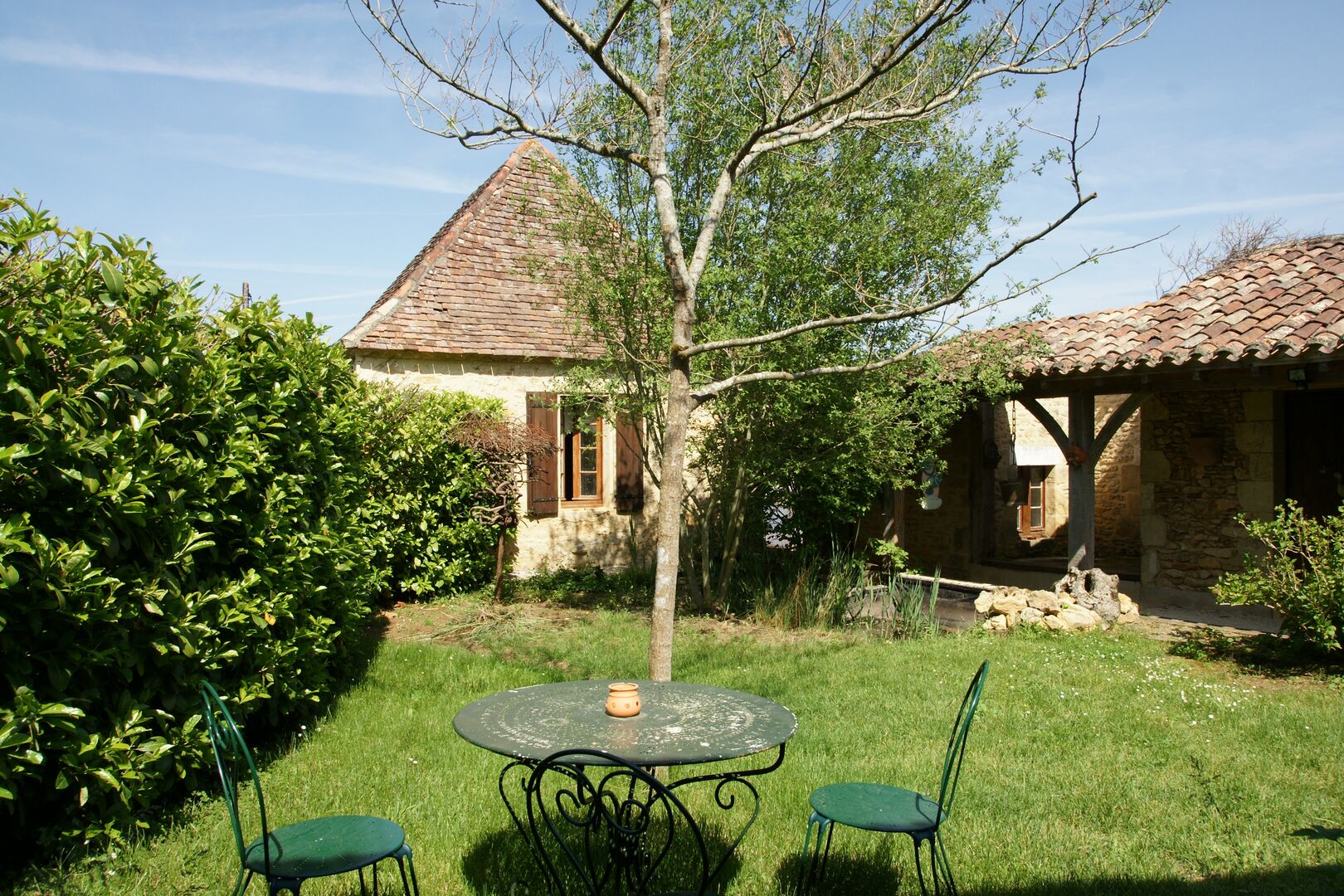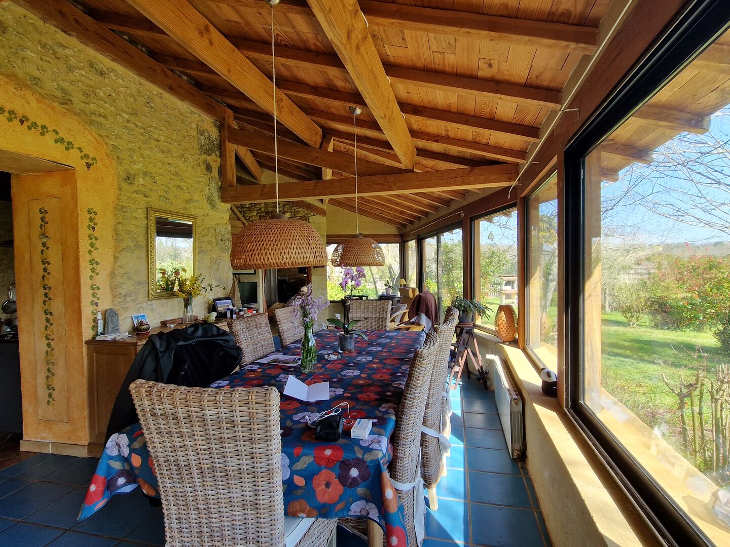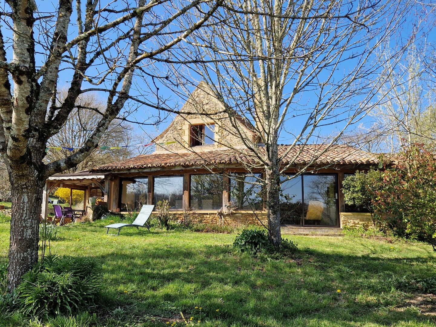 Env 10 km de Lalinde et du Buisson, en impasse, à l'orée d'un joli petit hameau. Avec vue dégagée sur un environnement calme et valonné de prairies et de bois. Cet ensemble typiquement périgordin concentre de manière hamonieuse, une maison principale avec magnifique volume pour la pièce à vivre largement éclairée , chambre, dressing, salle d'eau de plain pied. A l'étage, 2 chambres, salle d'eau. Communiquant (ou pas) ! : Petit Gite pour 4 personnes dont 2 chambres et jardin intimiste. Grand Gite pour 8 personnes dont 3 chambres. Terrasse couverte dallée. Piscine couverte, four à pain. Dépendances à usage d'atelier. Abri en bois pour un âne, un cheval, des moutons ? Potager, Parking. L'ensemble est vendu partiellement meublé. En fait, ici, c'est l'endroit propice pour se resourcer, le paysage vous y invite et l'architecture est douce ainsi que ce petit chemin vers des balades en forêt. Les informations sur les risques auxquels ce bien est exposé sont disponibles sur le site Géorisques : www.georisques.gouv.fr