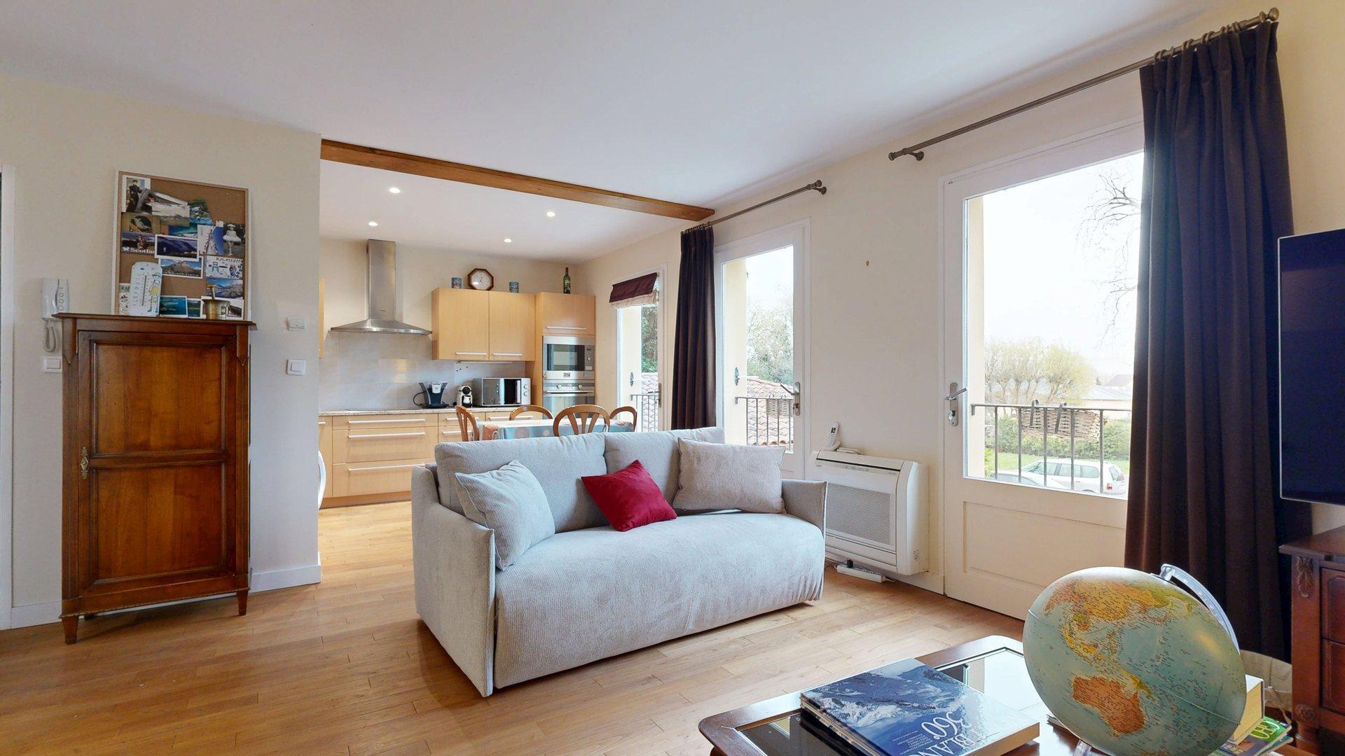 EXCLUSIVITE LABEL PIERRES Dans une petite résidence familiale de standing du centre ville de Saint-Cyprien, très bel appartement de deux pièces (grand salon, salle à manger, chambre, cuisine, salle d'eau, wc). Plein sud traversant. Etat neuf. Prestations de haute qualité: planchers massifs en chêne, chauffage climatisation économique et écologique par pompe à chaleur individuelle, vitrages doubles, volets bois, cuisine équipée. premier étage côté jardin et entresol côté rue avec façade en vieilles pierres du Périgord. balcon avec vue sur grands arbres tricentenaires. Ensemble très lumineux (4 baies vitrées dans la pièce à vivre). Parking sécurisé. particulièrement calme bien que très proche de tous les commerces. Charges collectives très faibles (environ 30 euros par mois). Un art de vivre très périgourdin. Les informations sur les risques auxquels ce bien est exposé sont disponibles sur le site Géorisques : www.georisques.gouv.fr