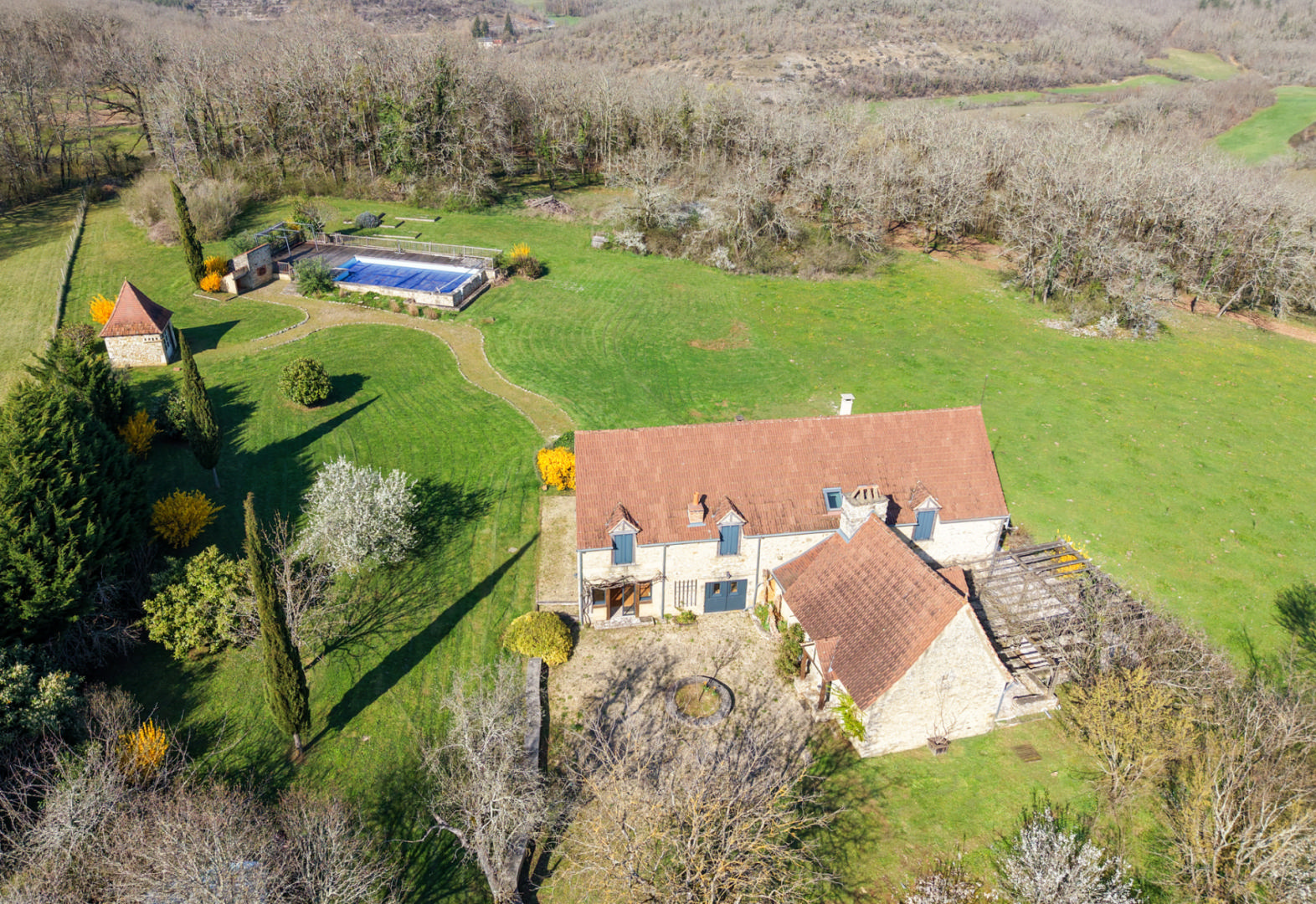 EXCLUSIVITE - Secteur Gourdon - Ancien Corps de ferme restauré avec vue imprenable et piscine sur 2ha63