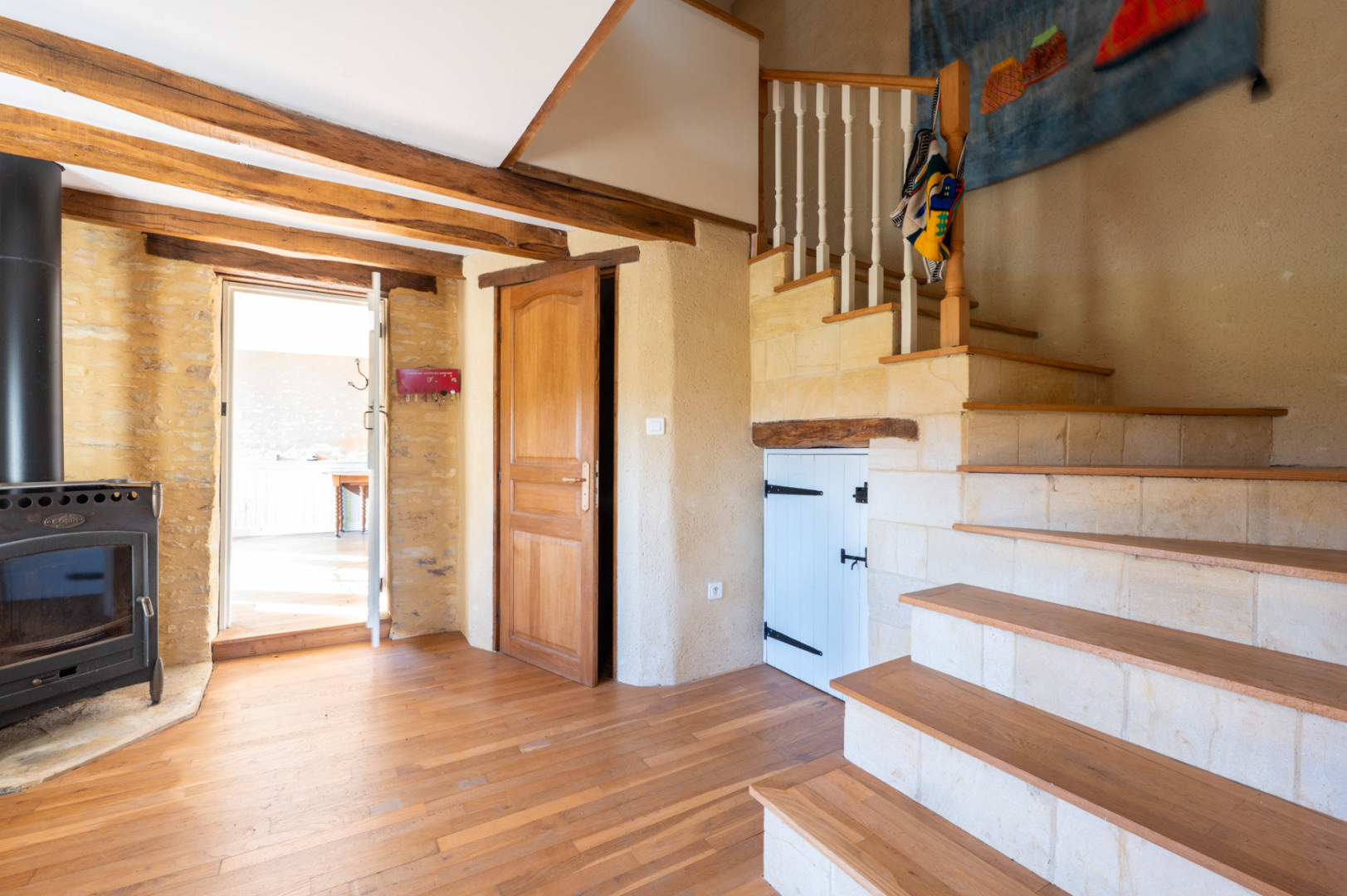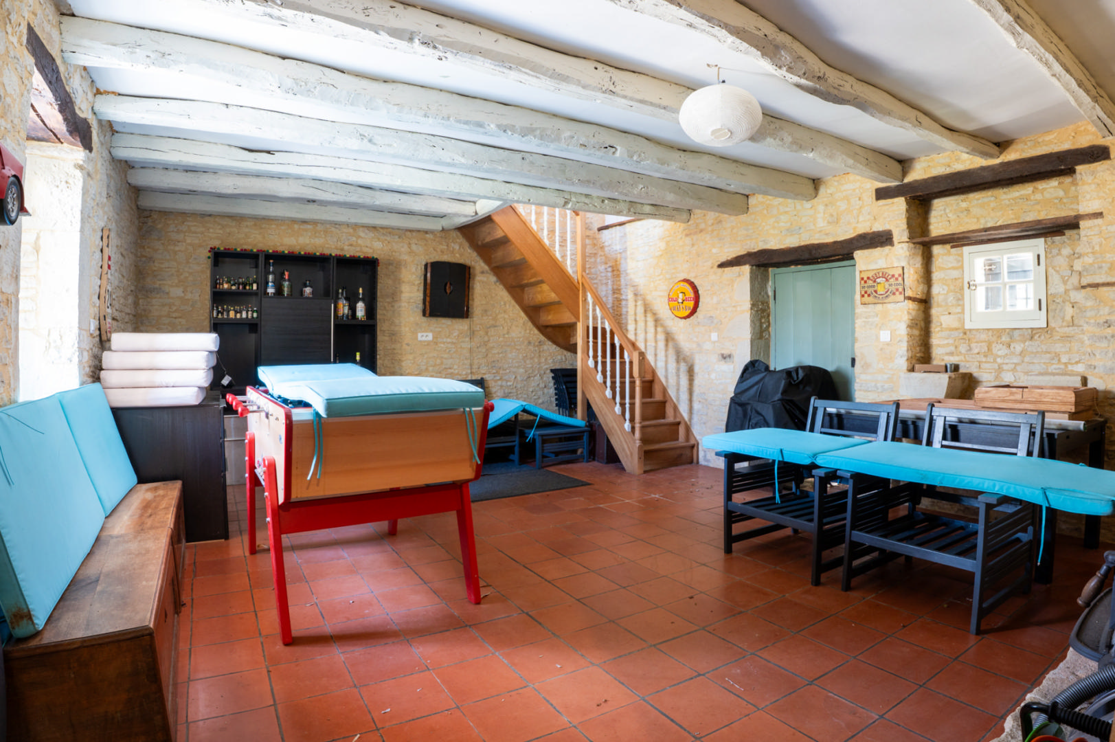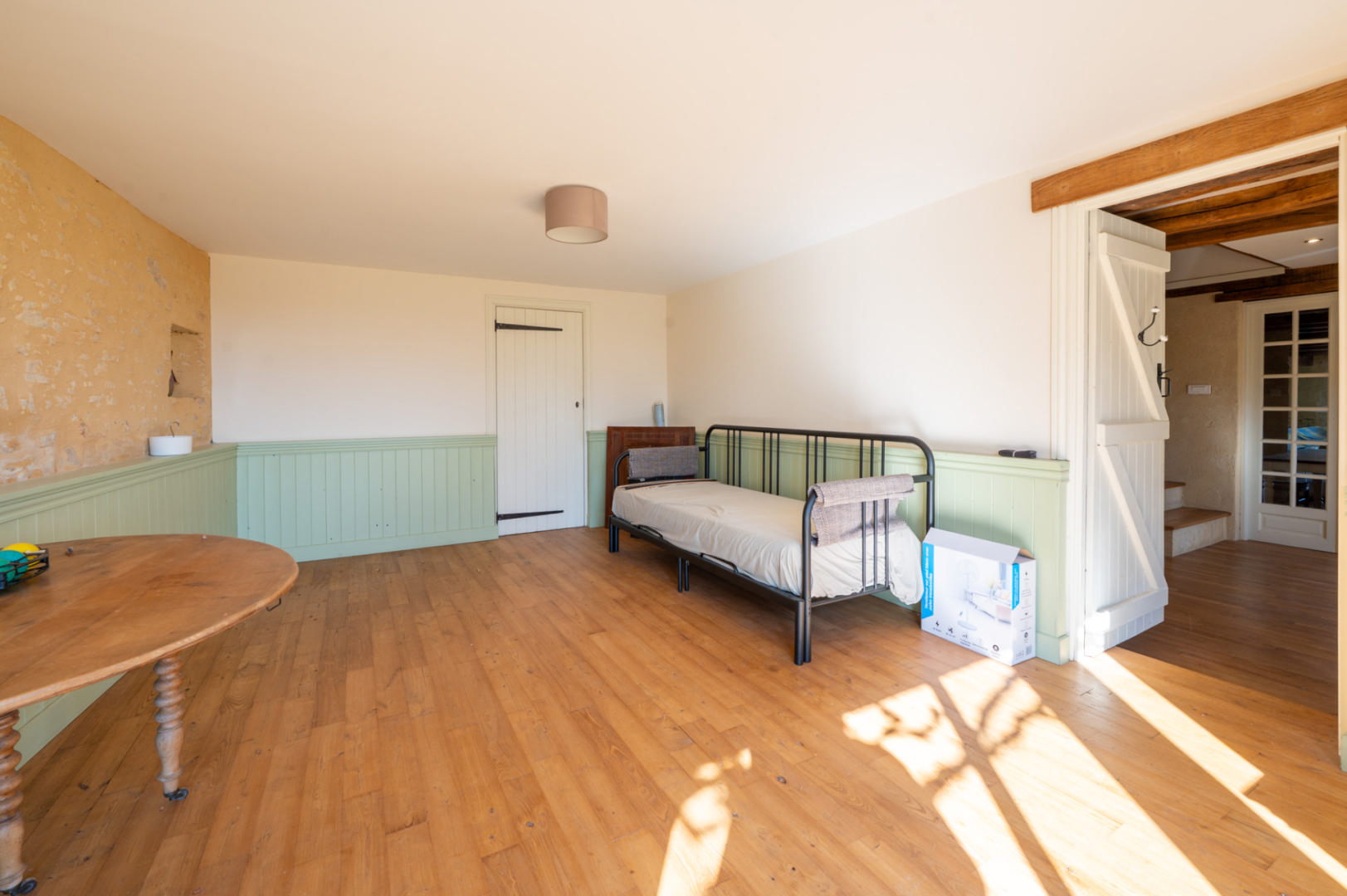 - Salon(s) maison en pierre attenante - salon de 30 m² avec cheminée (poêle) et chambre à l'étage de 15 m² avec placards