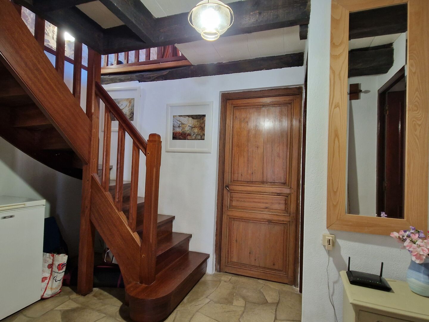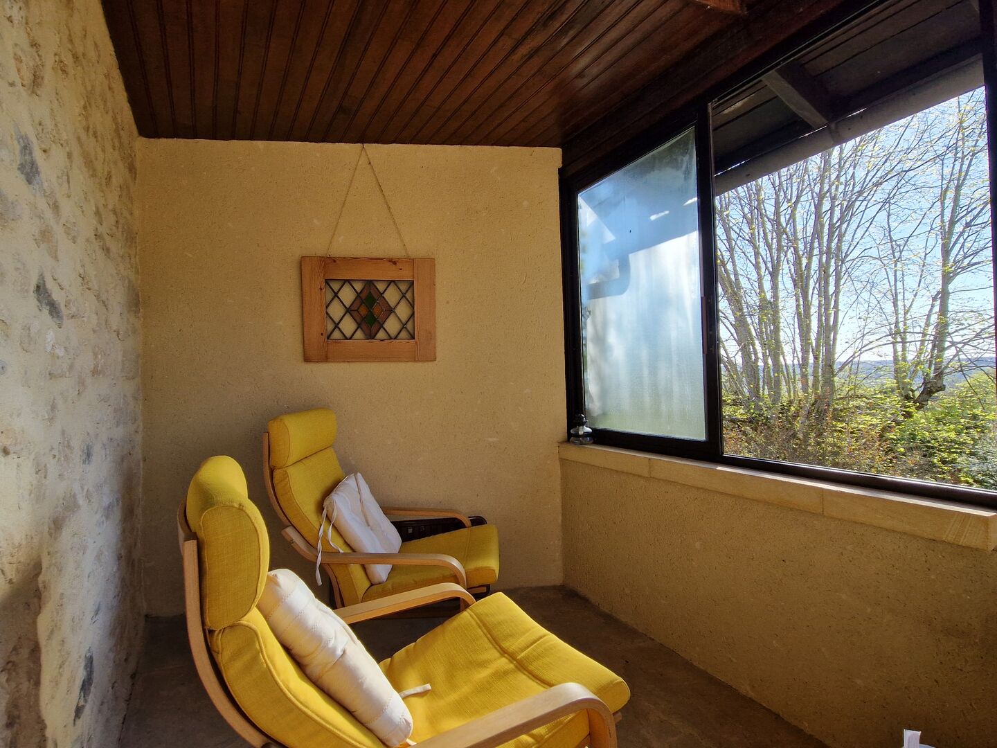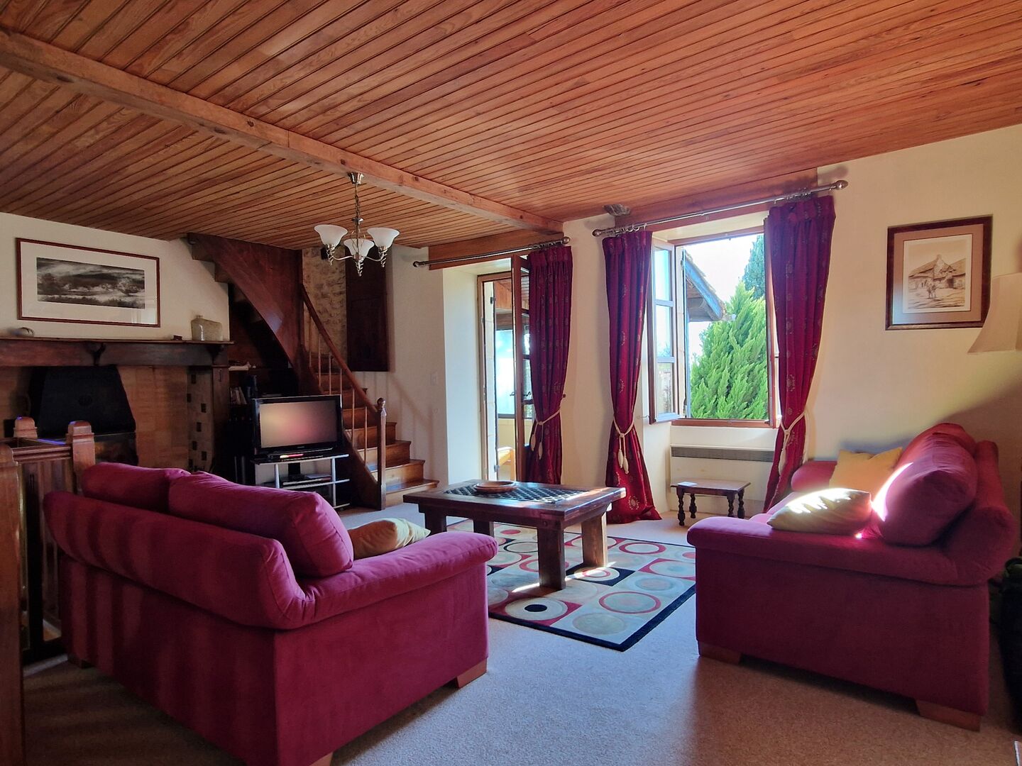 - Salon(s) 33m2 cheminée avec poele a bois, escalier pour les combles améngés, sortie sur bolet/veranda (double vitrage) vieil évier, escalier de pierres vers le jardin.
