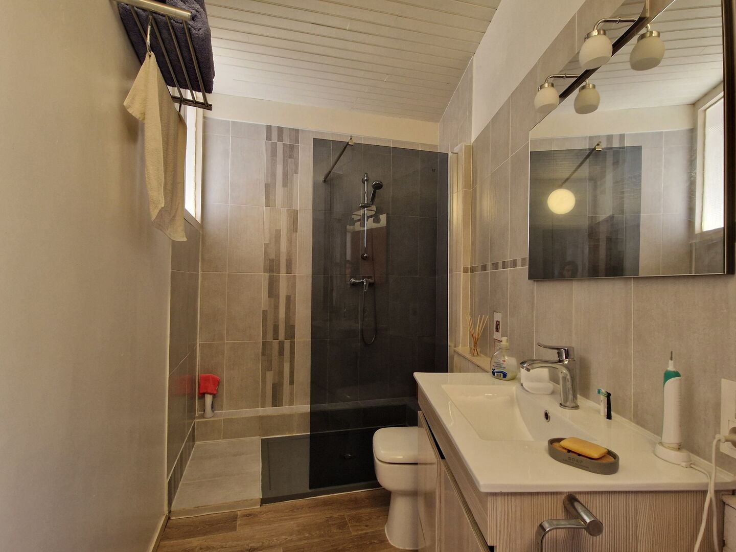 - Salle(s) d'eau en suite de la chambre 5,5m2, vasque sur meuble, wc, douche italienne