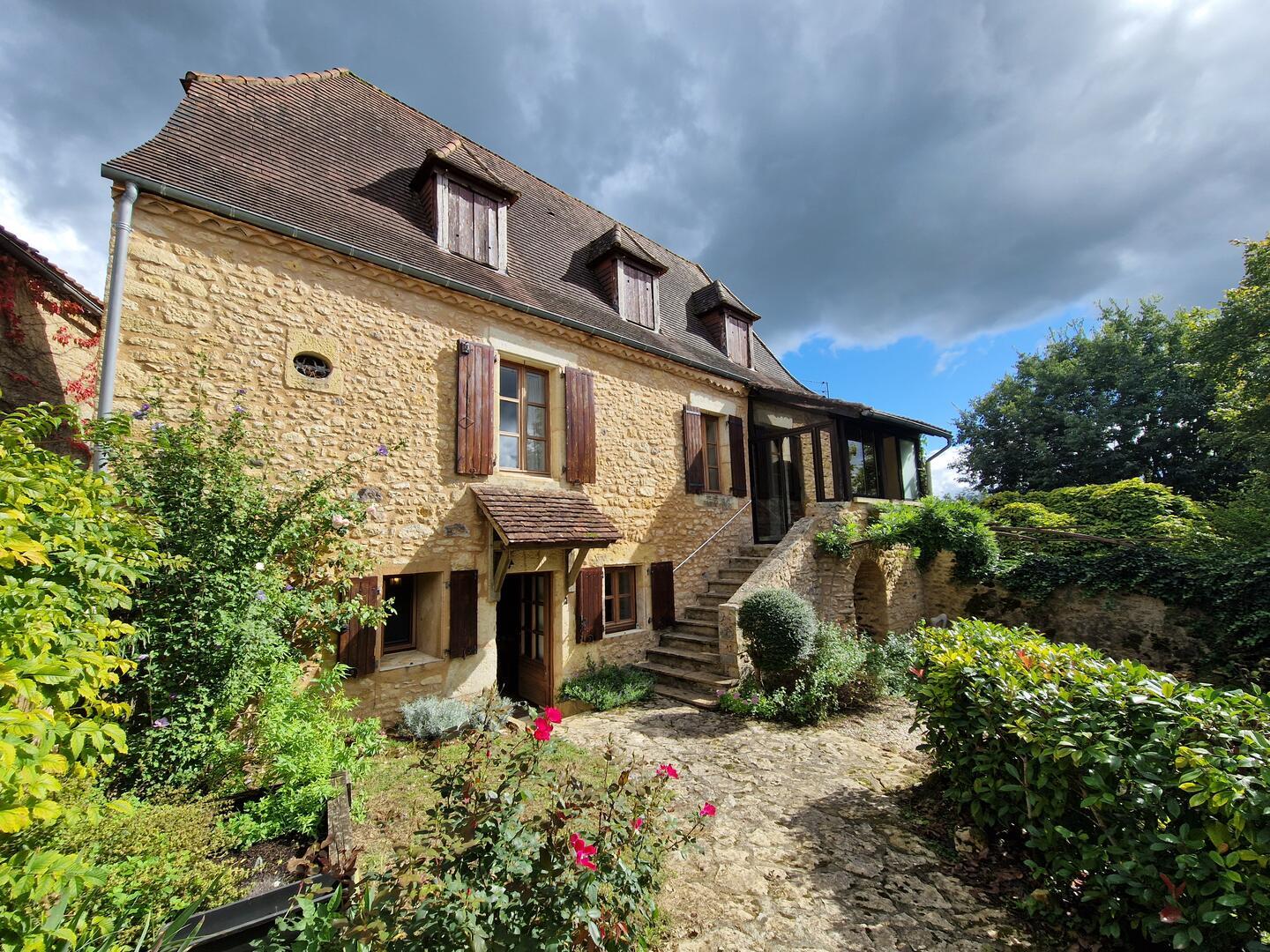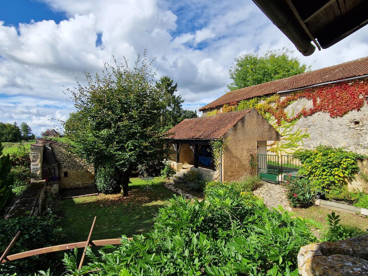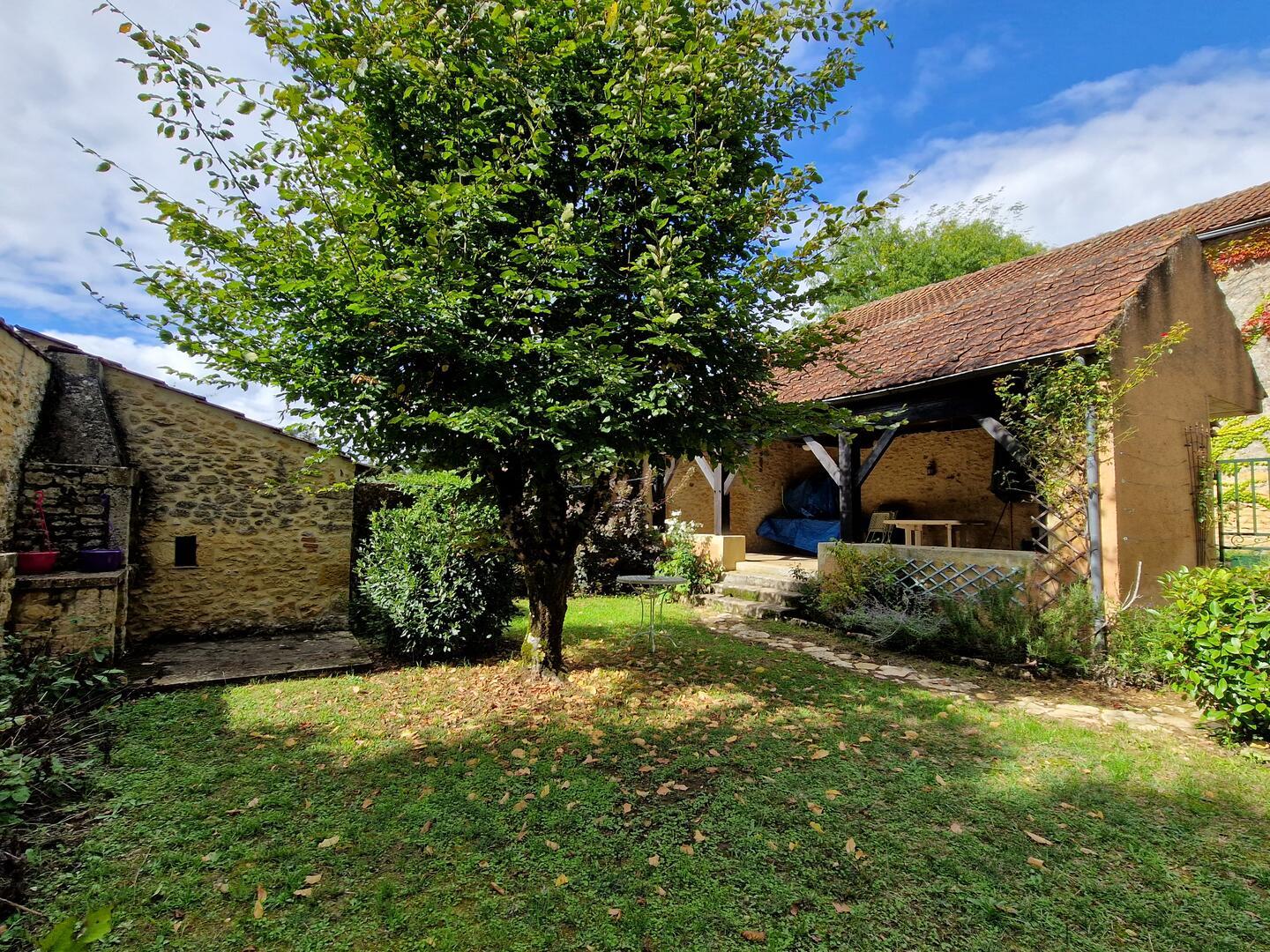 Sur hauteur, à l'orée d'une charmant hameau avec jardin et grange pour garage, cette maison ancienne en pierres du pays avec en façade son joli jardin clos de murs est une opportunité ! Idéale résidence secondaire , simple et efficace avec Cuisine, salle d'eau, wc, cellier. 1er Etage Salon avec cheminée et poele, accès au bolet vers le jardin par petite veranda. Chambre et salle d'eau ensuite. Les combles sont aménagés avec palier et 2 chambres avec vue sur le couchant. Son jardin nécessite peu d'entretien, trés ensoleillé et intimiste entre ses murets de pierres. Une terrasse d'été couverte vous permettra de prolonger vos déjeuners quotidiens. De plus, à env 20 mètres de la maison, une Grange en pierres de 67m2 au sol permet de garer au moins 2 voitures, des vélos, un canoé !... ou d'y faire un atelier. Un cantou est présent ainsi qu'une mezzanine. De belles randonnées sillonnent le secteur, les points de vue magnifiques, la rivière est à env 3 km, les commerces et marchés à 4 km au Buisson et 9 km du Bugue. Les informations sur les risques auxquels ce bien est exposé sont disponibles sur le site Géorisques : www.georisques.gouv.fr