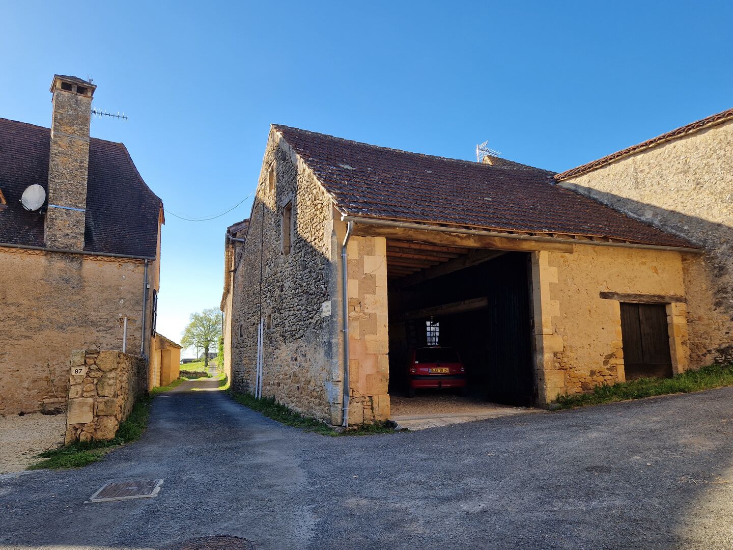 - Grange(s) 67m2 , ancienne en pierres ( à 15m de la maison) à usage de Garage pour au moins 2 véhicules. cheminée.