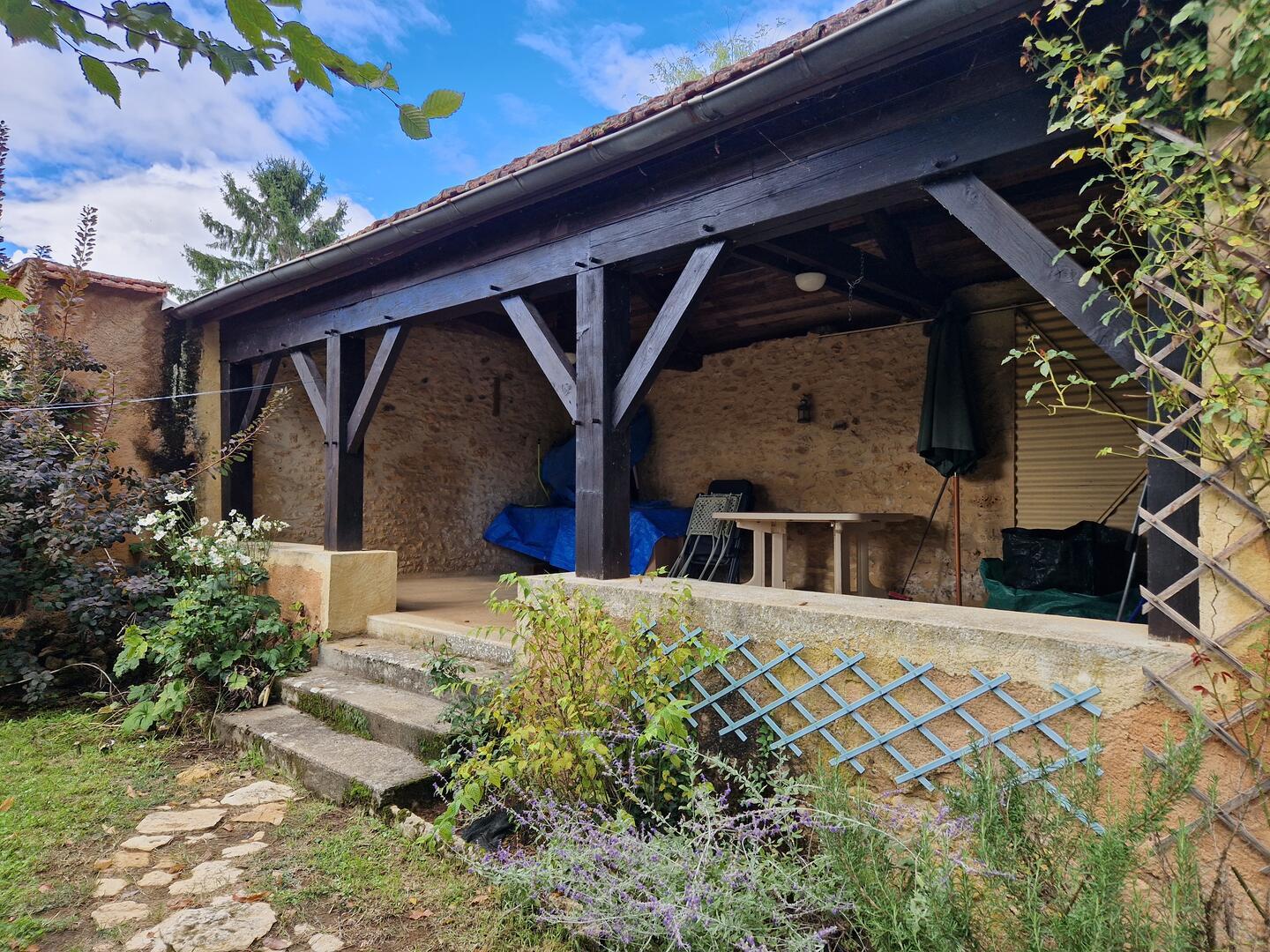 - Préau(x) Terrasse couverte dominant le jardin.