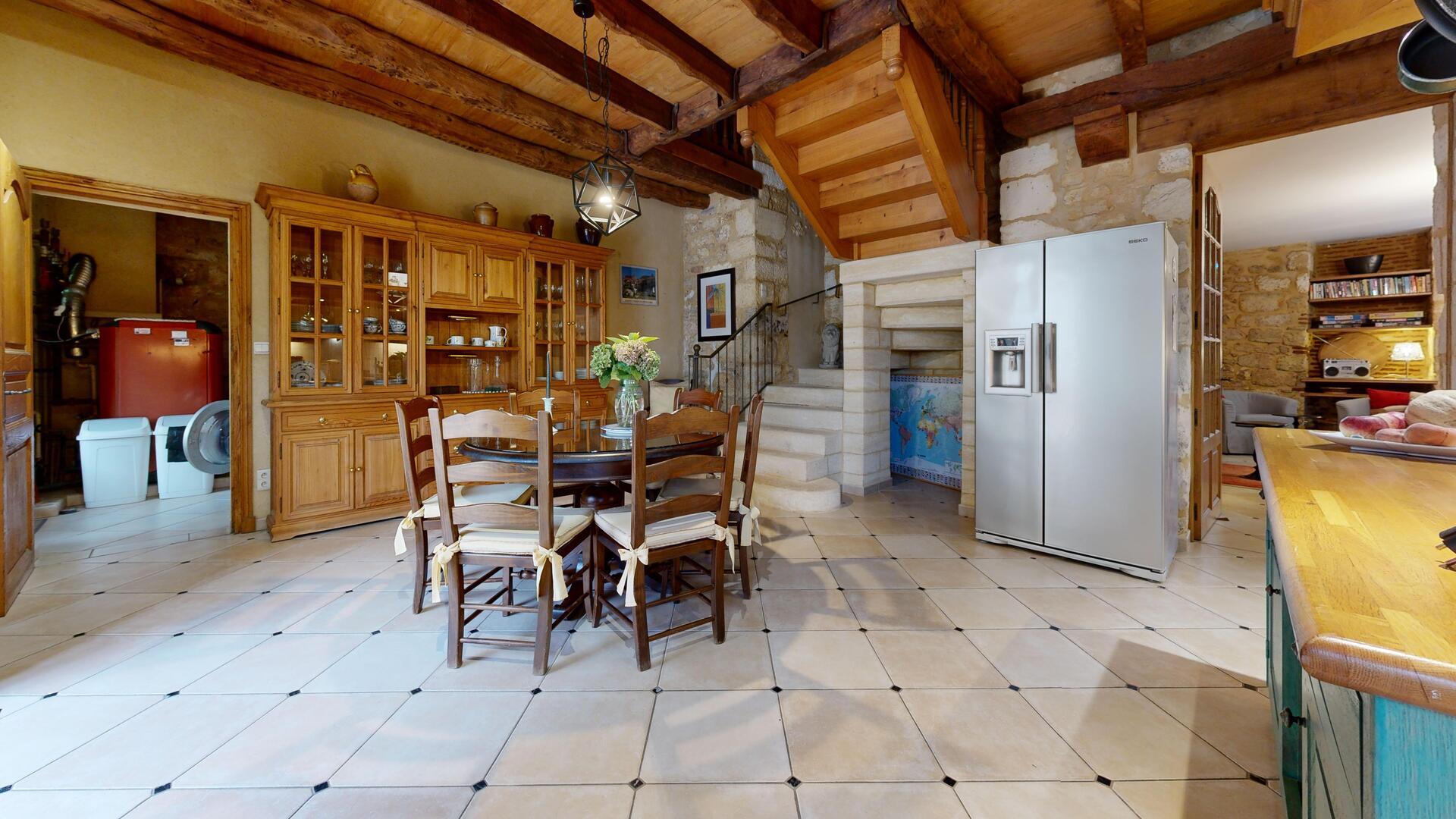 Vous rêvez d'une maison où il suffit de poser ses valises ? Découvrez ce véritable coup de cœur en plein centre de Saint-Cyprien, au cœur du Périgord Noir ! Admirez la magnifique façade en pierre de taille de cette maison de village qui a bénéficié d'une rénovation complète, soignée et de très haut standing, préservant le charme de l'ancien tout en offrant le confort moderne. Emplacement IDÉAL : Vous êtes au cœur du village, avec un accès immédiat à tous les commerces, la gare et les établissements scolaires (écoles et collège à 5/10 min à pied). Le charme est omniprésent : poutres, cave voûtée, et beaux matériaux s'allient pour créer des espaces de vie chaleureux, notamment le double salon avec poêle à bois et cheminée ouverte, offrant de très beaux volumes pour recevoir. La maison comprend 4 belles chambres, dont deux suites parentales complètes (avec salle de bains et WC). Côté détente, profitez d'une véranda lumineuse et d'une terrasse couverte très appréciables. Répartie sur plusieurs niveaux, la maison offre 270m² habitables (4 chambres, 3 salles de bains, 2 grands salons). Le Rez-de-chaussée accueille la cuisine/salle à manger, le salon/salle à manger et une grande cave voûtée/buanderie, tandis que les étages sont dédiés aux salons et aux chambres. Côté confort, vous bénéficiez du chauffage mixte (Bois et Fuel), du double vitrage et de la Fibre optique disponible. C'est une opportunité rare de vivre sans voiture au cœur d'un village dynamique et prisé. Les informations sur les risques auxquels ce bien est exposé sont disponibles sur le site Géorisques : www.georisques.gouv.fr