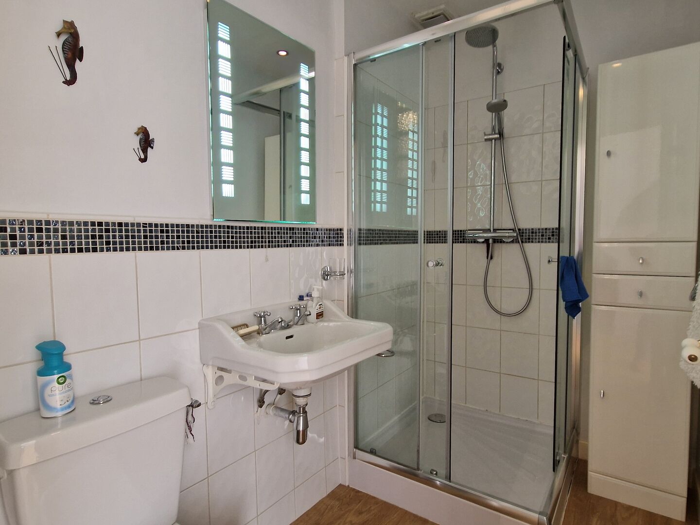 - Salle(s) d'eau Dans la tour : 3,60m2 Douche, radiateur sèche serviette
