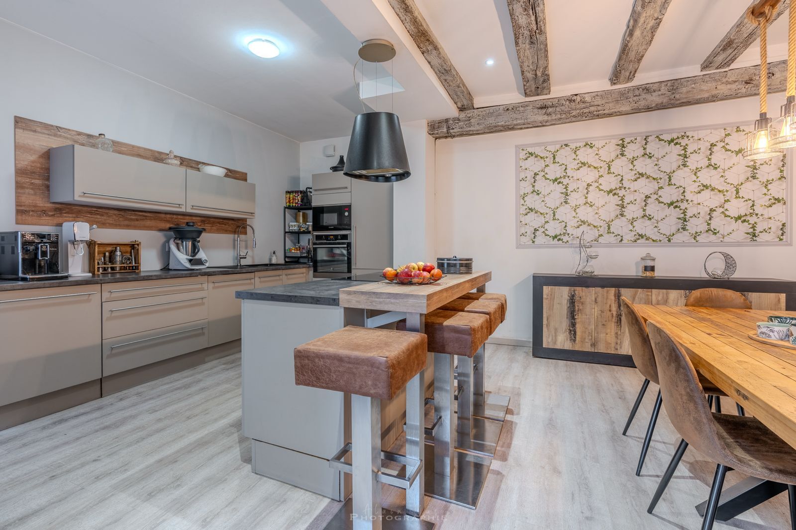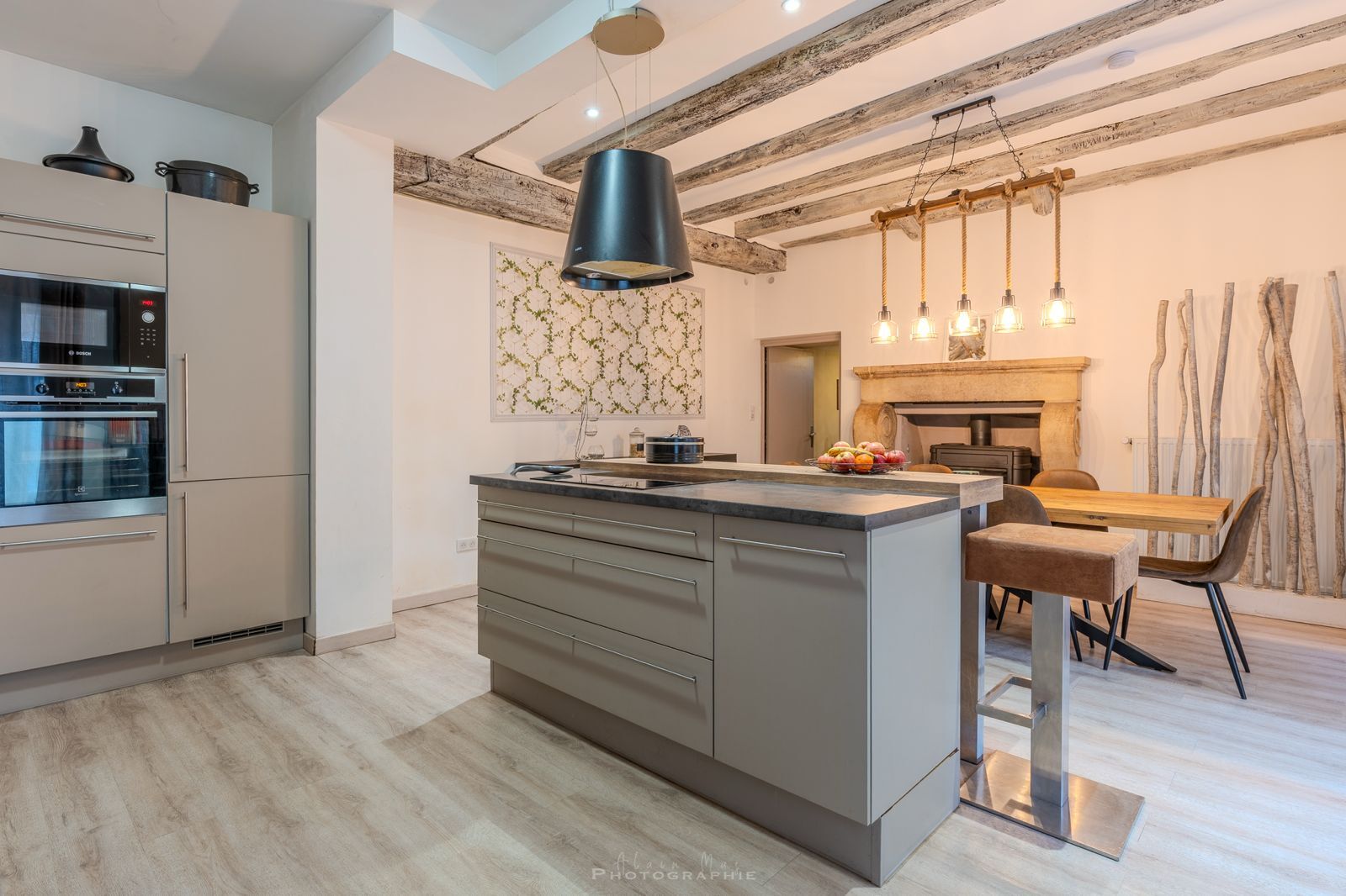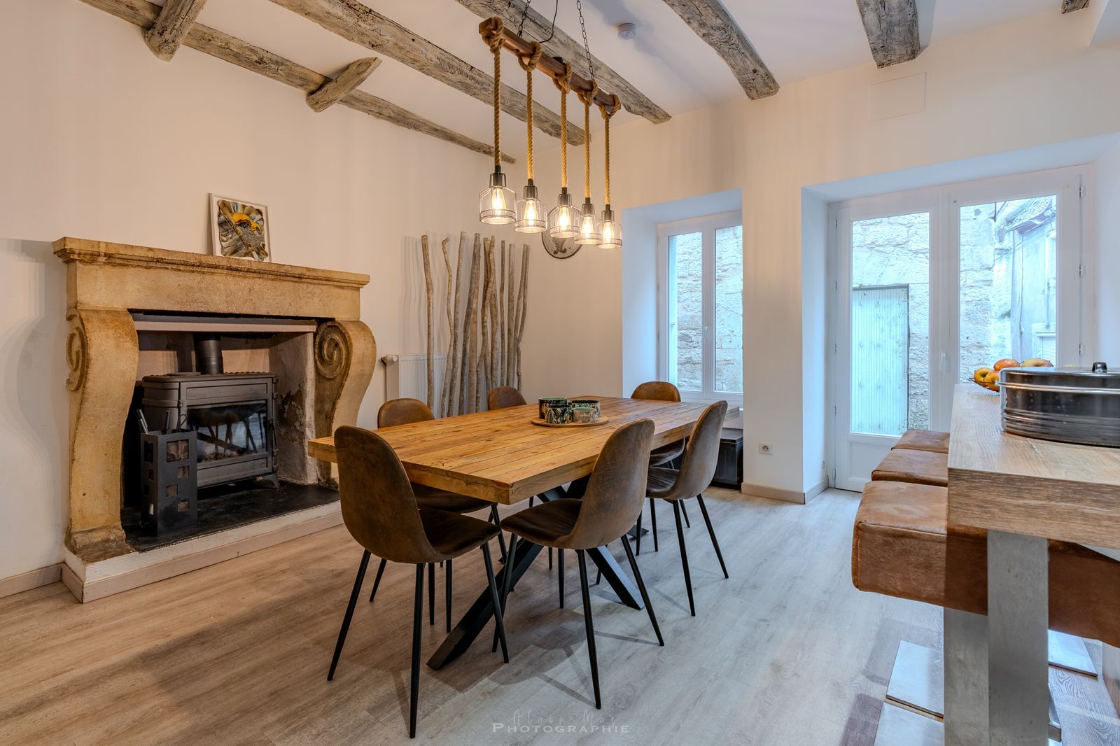 - Bois poele à bois dans la cuisine /salle à manger