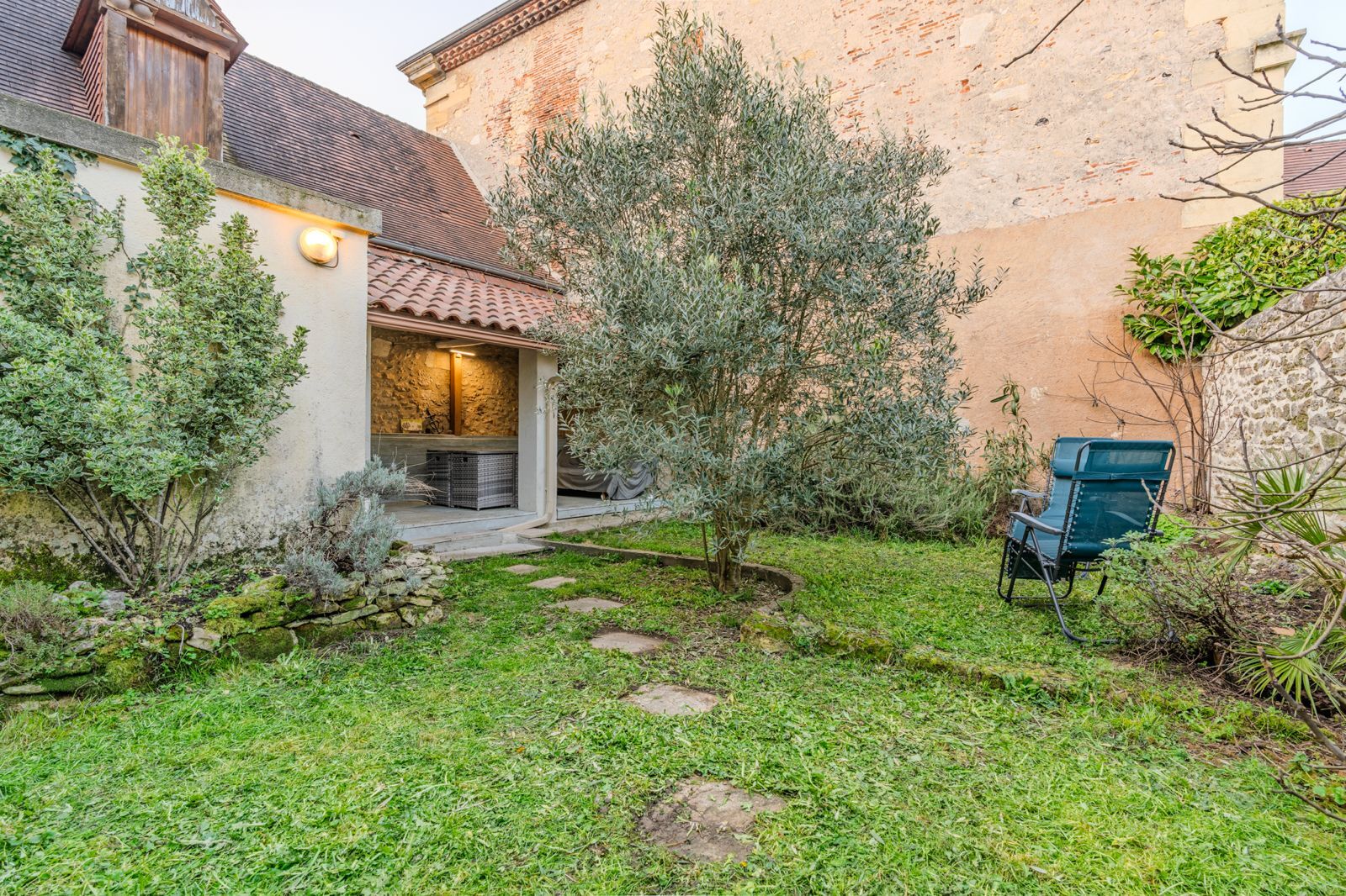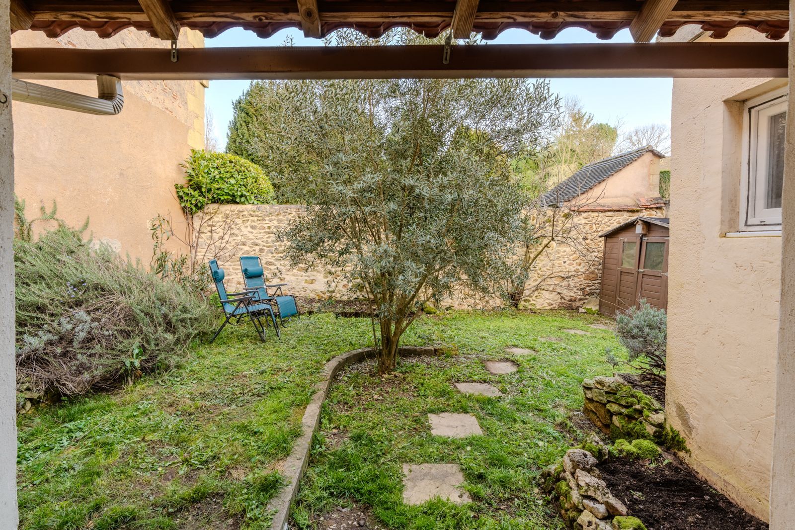 - Jardin(s) Jardinet à l'arrière clos de murs avec petite terrasse couverte en tout 191m2