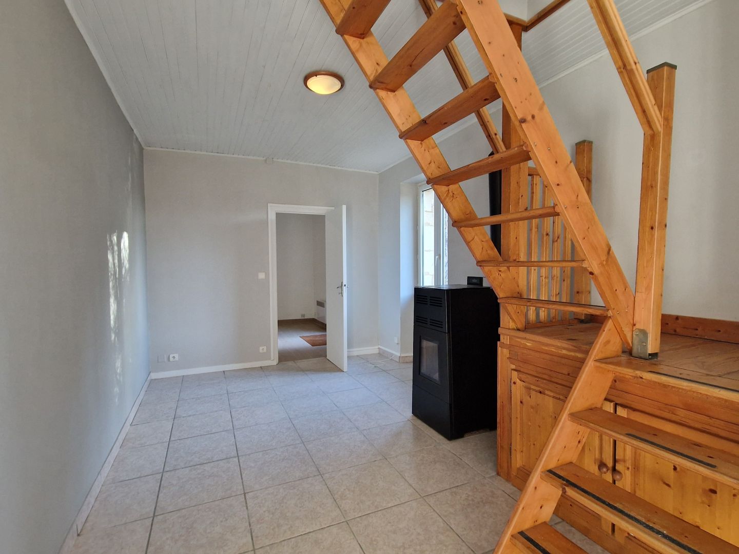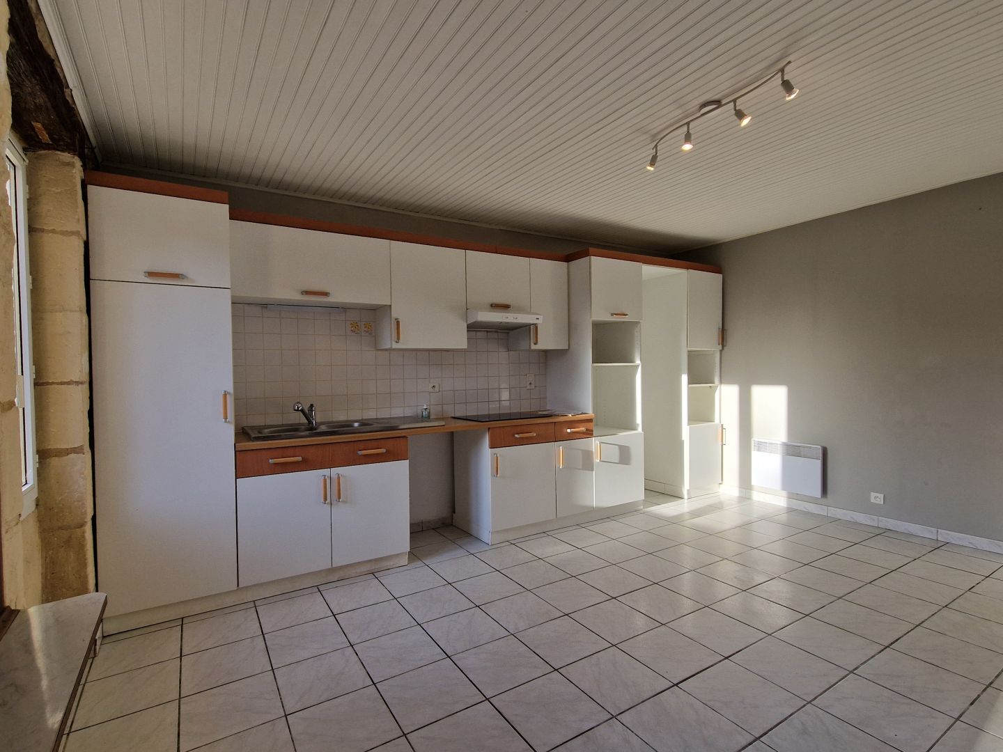 - Pièce(s) à vivre 34 m2 Cuisine aménagée, plaque induction neuve, hotte, Evier inox neuf, emplacement LV. Partie Salon avec poele à pellet