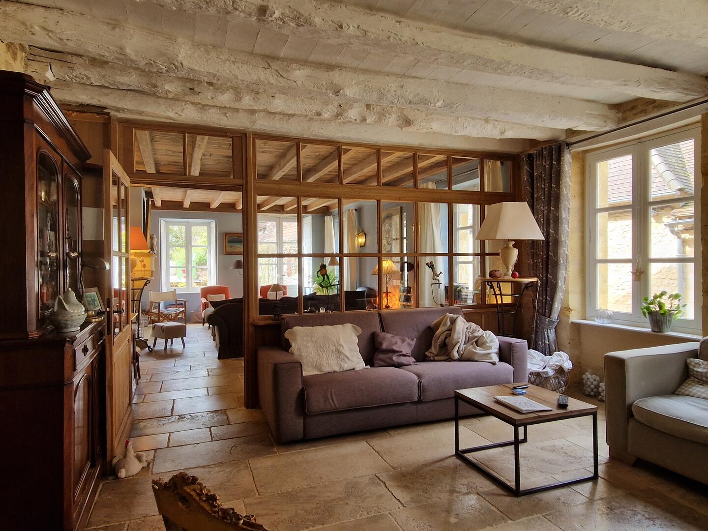 C'est une demeure de charme qui méritait la rénovation dont elle a beneficié, travail de recherche, de qualité, au confort moderne avec des matériaux nobles, bois, pierres, dans le respect de l'architecture des maisons périgordines Ici, dans un quartier calme, proche des commerces et du marché du Bugue sont réunis des atouts majeurs : La Maison principale sur 3 niveaux avec une entrée par beau porche en pierres sur jardin clos de murs avec piscine 8x4 aux plages bois. Une maison d'amis que vous pourrez rénover à votre goût. La maison comprend en rez de chaussée, vaste garage et pièce pour rangement, local technique piscine. En rez de jardin une cuisine très éclairée aménagée et équipée s'ouvre sur Salle à manger/Salon au sol dallé avec cheminée au foyer ouvert, double face, Bibliothèque, Salle d'eau. Au 1er Etage au sol parquet, 3 chambres, Salle de bains, dressing et la possibilité d'aménager une salle d'eau supplémentaire. Délibérement orientée vers son jardin ne demandant que peu d'entretien. Les informations sur les risques auxquels ce bien est exposé sont disponibles sur le site Géorisques: www.georisques.gouv.fr