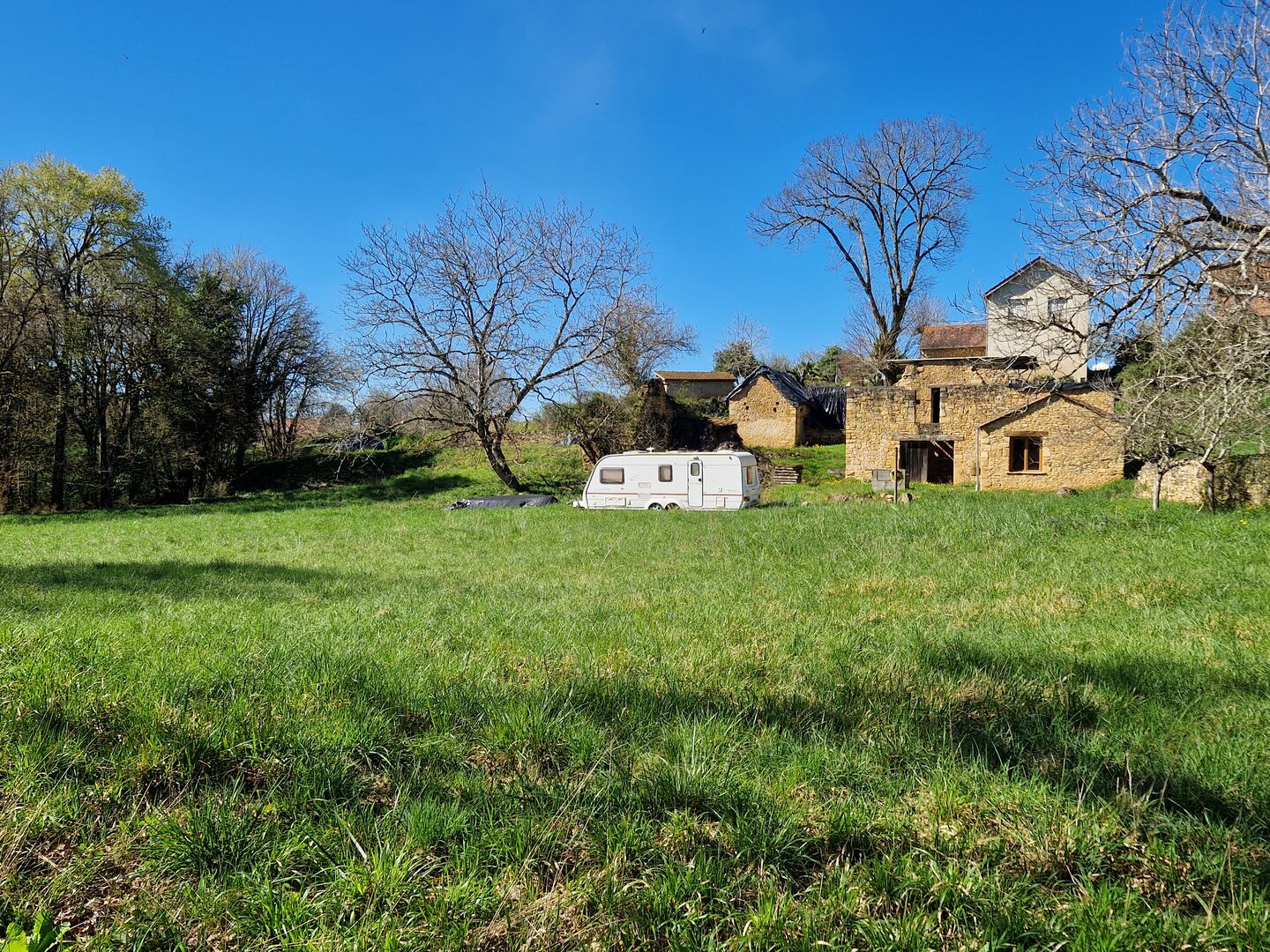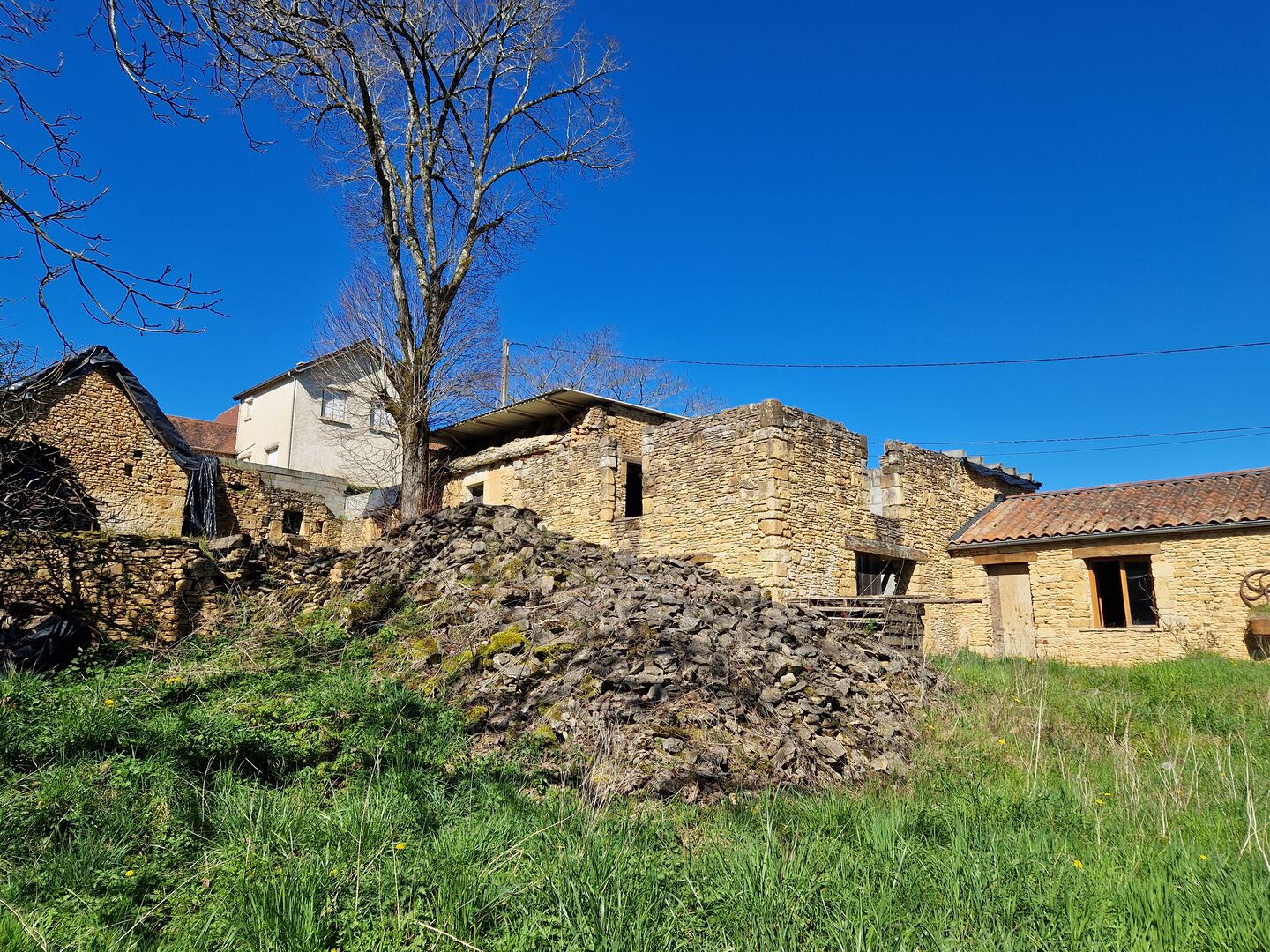 Environ 1 km d'un charmant village du Périgord Noir, 7 km de St Cyprien et env 17 kms de Sarlat. Beau projet suspendu actuellement, en pierres du pays, sur la base d'une maison ancienne avec extension de chaque côté mais qui ne demande qu'à être finalisé ou modifié. Petite dépendance en pierres, ancien four à pain en ruine, sur un terrain plat partiellement clos de murets de pierres dans un environnement calme et agréable. Les informations sur les risques auxquels ce bien est exposé sont disponibles sur le site Géorisques : www.georisques.gouv.fr