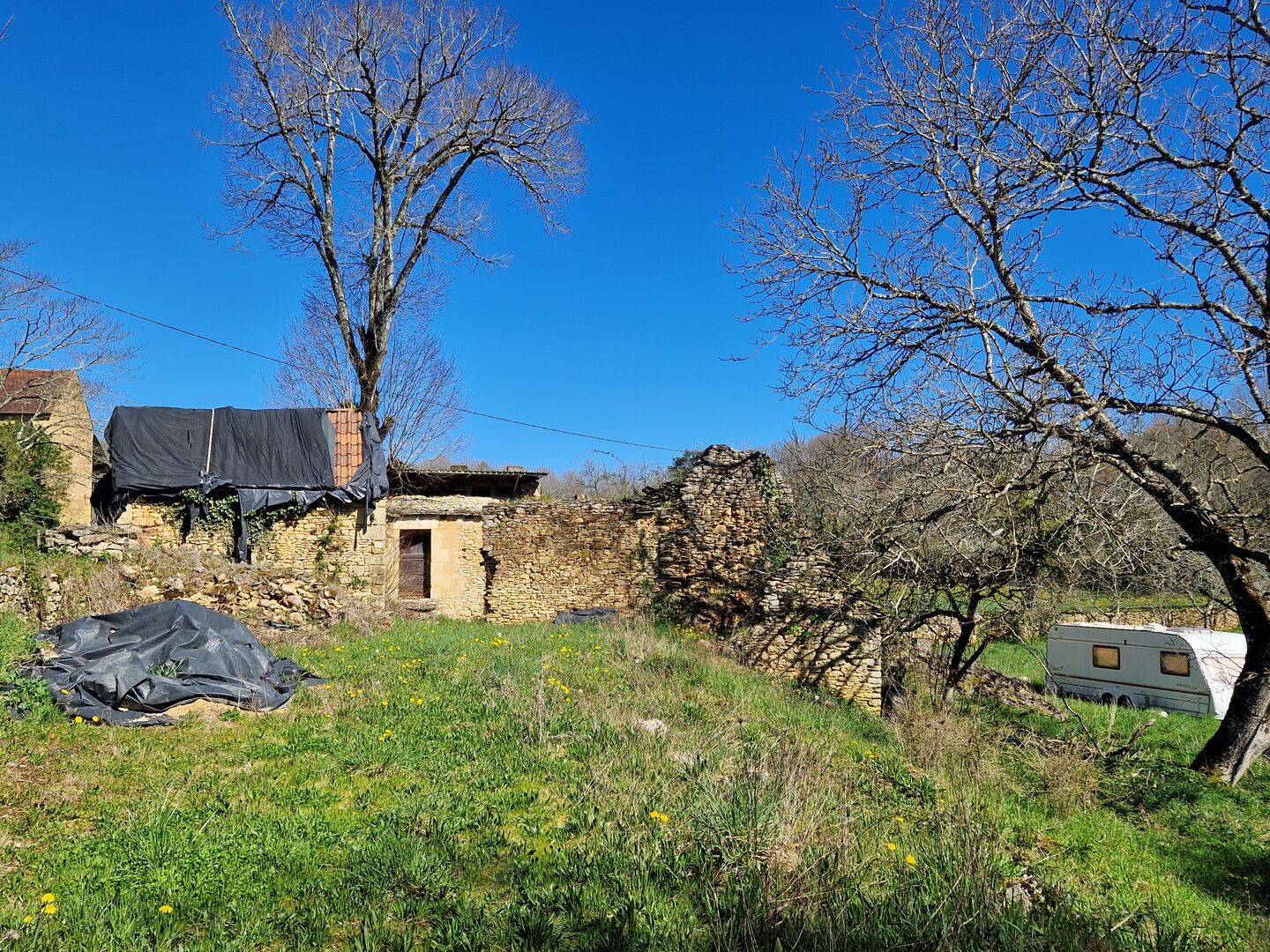 Perigord Noir, Projet en pierres du pays, en cours de renovation et début d'extension sur joli terrain clos de murets