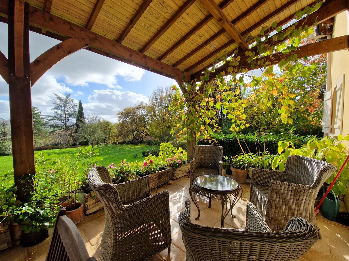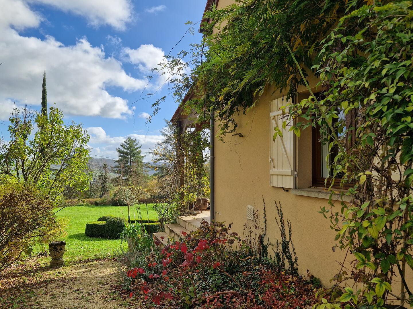 Belle harmonie pour cette maison des années 2005, confortable, lumineuse avec sa terrasse couverte et vue sur la vallée ainsi que son terrain avec accès par allée privée, bien réparti et arboré. A env 4km des commerces au calme et non isolée. C'est une maison en parfait état, nous entrons sur une Pièce à vivre avec cheminée et poele, plafond poutres, cuisine attenante aménagée, qui cotoient une large terrasse couverte où vous passerez du temps, contemplatif de cette belle vue ou pour de conviviaux déjeuners. Un cellier, wc, et garage terminent le rez de chaussée. A l'étage efficace : 3 chambres, salle d'eau, grands placards. Qui plus est la maison est performante, à l'heure où la performance énergétique compte, elle est classée " C". Près de la maison annexe bois pour le matériel et carport. Au sud piscine hors sol de 2024 et hormis un jardin bien paysager un verger très productif ! on imagine déjà la bonne odeur d'une tarte aux pommes ! ... Les informations sur les risques auxquels ce bien est exposé sont disponibles sur le site Géorisques : www.georisques.gouv.fr