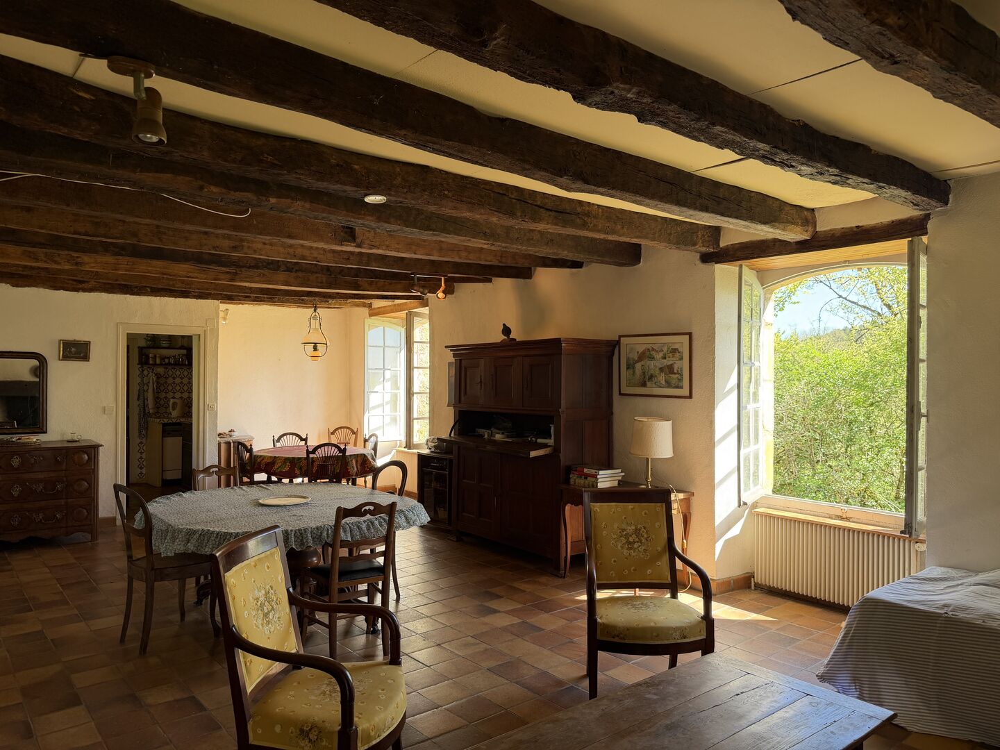 Cette élégante propriété en pierres jaunes du Périgord, allie caractère, espace et sérénité dans un environnement privilégié. La vue est large et dégagée. Le calme est de rigueur. La maison principale dotée d'une tour dominante offre cinq chambres, dont une surprenante chambre voûtée avec accès indépendant. Le vaste séjour/salon avec son cantou est chaleureux, véritable cœur de la maison, la cuisine est indépendante. Un grand hall d’entrée dessert harmonieusement les espaces de vie. Cave et chaufferie complètent l’ensemble. La propriété se distingue également par la présence d'éléments architecturaux, tels que la tour, la souillarde. Les murets en pierre dissimulés ça et la, viennent renforcer son caractère et son authenticité. Les dépendances, en excellent état de toiture, présentent un potentiel d’aménagement avec un atelier, une grange, une ancienne bergerie d’environ 130 m² ainsi qu’un bûcher. Implantée sur près de 2,5 hectares de bois et de prairies, la propriété garantit intimité et sérénité. Un cadre de vie exceptionnel, à seulement 5 minutes des commerces. Les informations sur les risques auxquels ce bien est exposé sont disponibles sur le site Géorisques : www.georisques.gouv.fr
