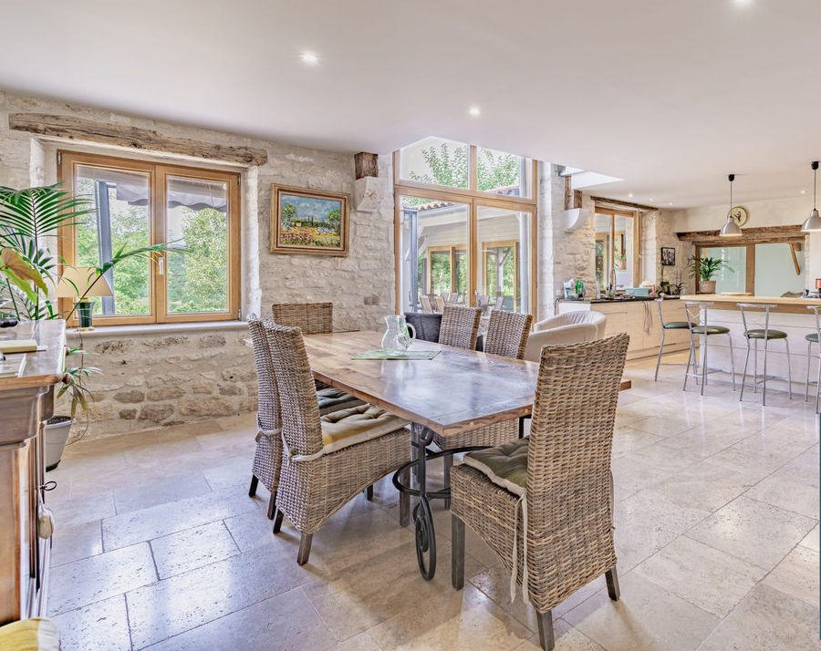 Région Montcuq - Domaine en pierre composée de deux maisons entièrement rénovées avec dépendances sur environ 3 ha de terrain à définir, petit étang, puits. 1ère maison (196 m² habitables) : sous-sol cave à vin. Rez-de-chaussée bas : véranda, séjour avec cuisine ouverte, buanderie, wc, 3 chambres, 2 salles d'eau. Rez-de-chaussée haut : séjour avec cuisine ouverte, 2 chambres, salle d'eau, wc. 2ème maison (164 m² habitables) : rez-de-chaussée : Hall d'entrée avec poêle à bois, séjour avec cuisine ouverte donnant sur la terrasse, et un accès sur la piscine couverte chauffée avec son salon, système de déshumidification et traitement de l'eau par UV, local technique, salle d'eau avec wc. Suite parentale avec dressing, salle d'eau /wc. Buanderie, wc. Etage : salon, bureau, 2 chambres avec chacune une salle d'eau, dressing, wc, 1 chambre avec salle de bains/wc. Dépendances : 4 garages dont 3 servants d'ateliers, faisant partie de l'ensemble des 2 maisons. Grange (local servant de salle de réception avec cuisine), hangar, et 2 garages attenants. Chauffage : 1ère maison au sol chaudière gaz et climatisation réversible. 2ème maison au sol réversible pompe à chaleur. Electricité Photovoltaïque revendue à EDF. Les informations sur les risques auxquels ce bien est exposé sont disponibles sur le site Géorisques www.georisques.gouv.fr
