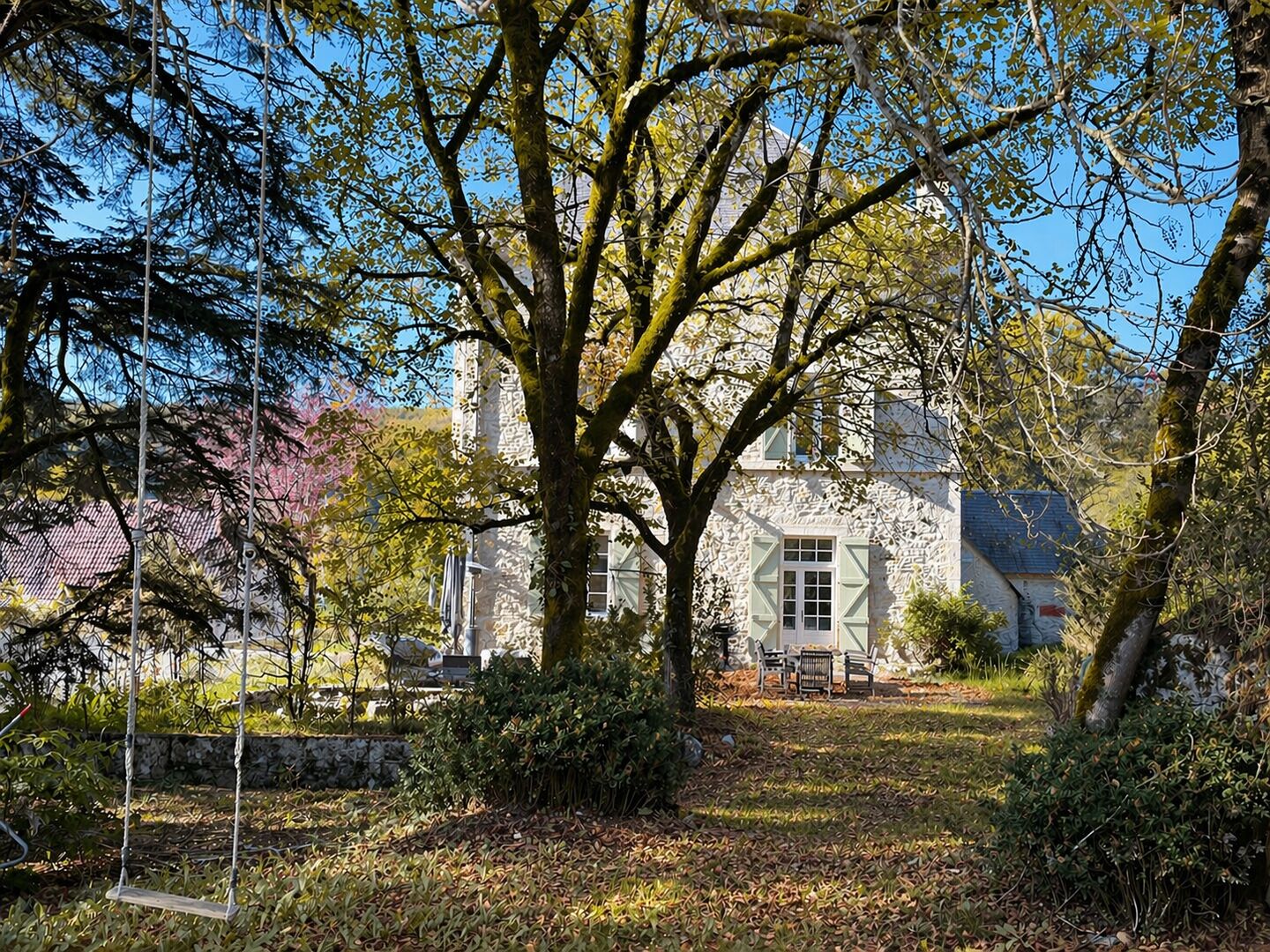 SECTEUR CAJARC – EXCLUSIVITÉ Au cœur de la vallée du Célé, cette propriété de caractère se compose d’une élégante maison de maître accompagnée de deux granges, le tout niché sur un domaine de plus de 35 hectares, en partie boisé. Un cadre privilégié offrant de nombreuses perspectives, tant pour un projet de vie que pour un projet d’aménagement. La maison principale s’organise comme suit : En rez-de-jardin, une entrée spacieuse dessert une salle à manger et un salon baignés de lumière, ainsi qu’une cuisine conviviale prolongée par une souillarde avec cellier. Une première suite, avec salle d’eau et accès direct à la terrasse, complète ce niveau. Un bel escalier ancien en bois mène au premier étage, où se trouvent cinq chambres supplémentaires. Quatre d’entre elles disposent de leur propre pièce d’eau, tandis qu’une autre s’organise en enfilade. Le second étage, à aménager selon vos envies, propose quatre autres pièces, offrant un beau potentiel d’agrandissement. Au-dessus, des combles viennent parfaire l’ensemble. La maison bénéficie également de caves en rez-de-chaussée, pour une surface d’environ 160 m². Côté dépendances, deux granges complètent la propriété : - La première se développe sur deux niveaux avec environ 128 m² chacun, - La seconde offre deux niveaux exploitables, avec environ 133 m² en rez-de-jardin et 135 m² en rez-de-chaussée. L’ensemble est agrémenté d’une piscine chauffée au sel, d’un puits et d’une citerne. Que vous recherchiez une résidence secondaire pleine de charme ou un lieu de vie au cœur de la nature, cette propriété séduira par son environnement exceptionnel et sa vue remarquable sur les falaises. Les informations sur les risques auxquels ce bien est exposé sont disponibles sur le site Géorisques : www.georisques.gouv.fr