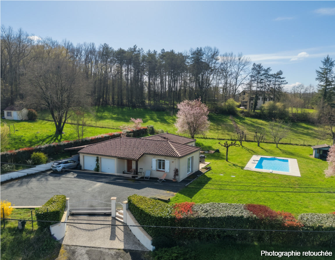 Secteur Gourdon - Agréable et lumineuse Maison de plain pied avec double garage, piscine sur 1998 m² clos