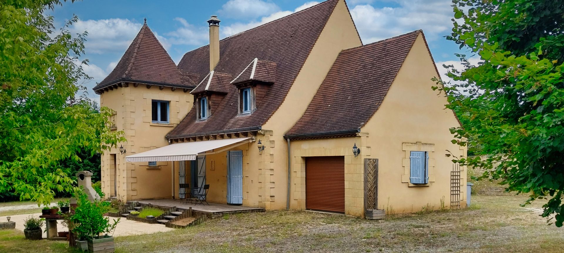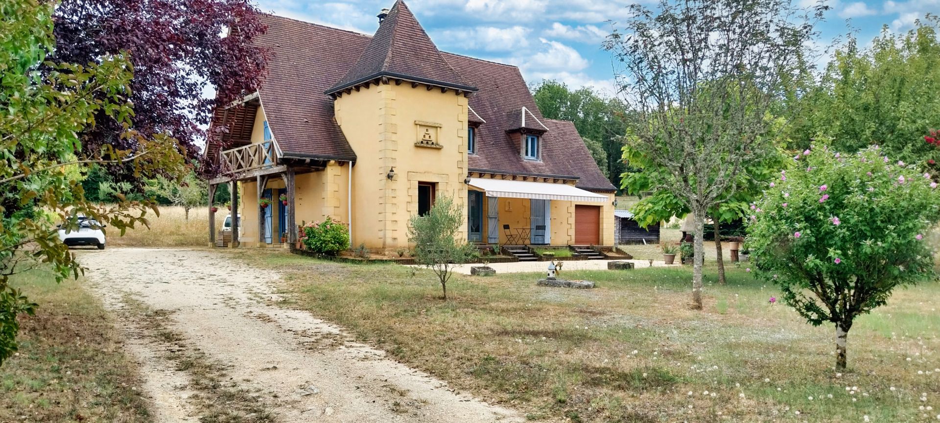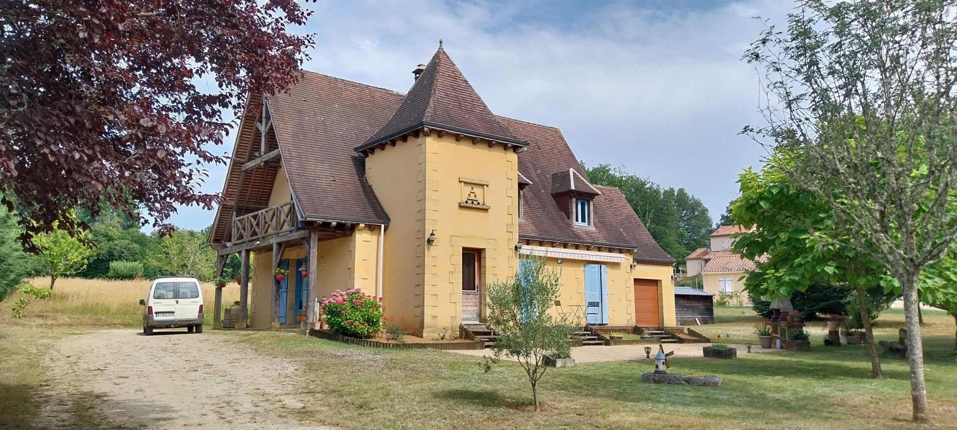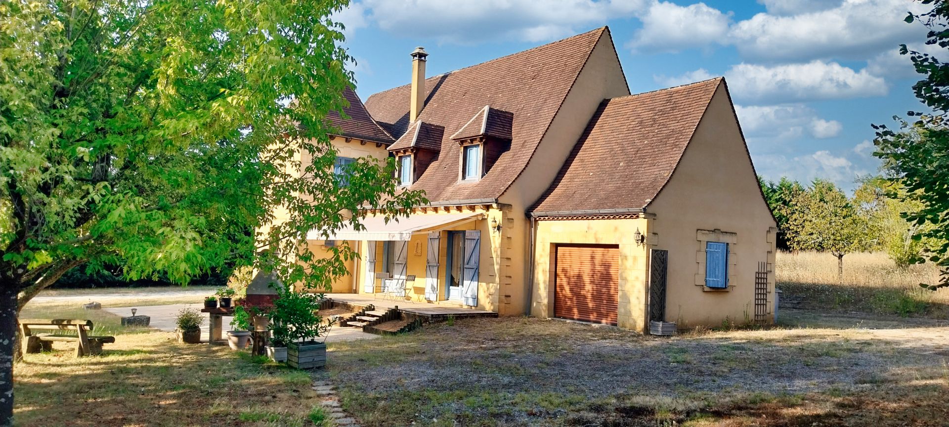 Idéalement située, sur les hauteurs et à 5 minutes des commerces et écoles de Cénac, maison périgordine de 2000 de 148m2 habitables édifiée sur un terrain plat de 4045 m2 avec arbres fruitiers. Elle est agencée comme suit : Une pièce à vivre de 27,84 m2 avec insert et belle poutraison, une cuisine indépendante équipée, une buanderie/cellier, une chambre, une salle de bain et un wc indépendant ; A l'étage: deux chambres un dressing, une salle d'eau wc séparés, bureau ainsi qu'une mezzanine donnant sur un balcon, agréable terrasse et garage attenant. Double vitrage, fosse septique, pompe à chaleur Les informations sur les risques auxquels ce bien est exposé sont disponibles sur le site Géorisques : www.georisques.gouv.fr