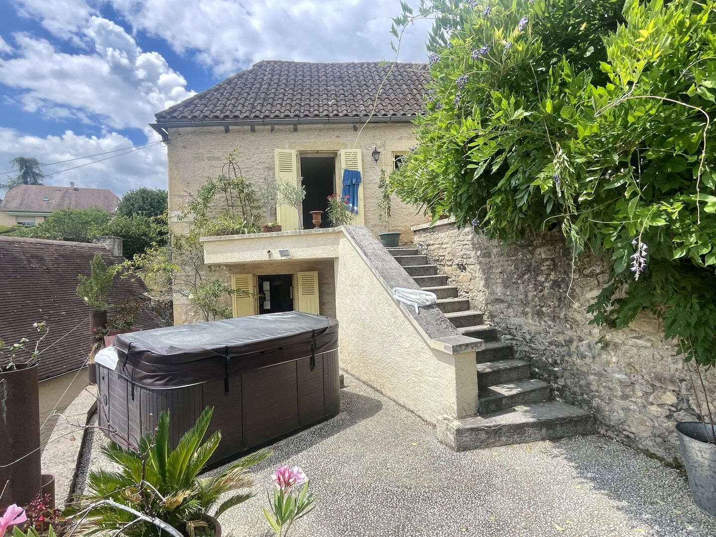 Sur les hauteurs de Montignac-Lascaux, à proximité à pieds des commerces, restaurants et autres commodités du village, cette propriété implantée sur 1500 m2 de terrain, offre une vue exceptionnelle sur le village. Composée d'une maison principale, d'une maison d'amis (ou gîte), d'une piscine et d'un charmant jardin arboré avec terrasses en paliers, cet ensemble unique conviendra aussi bien à un usage à l'année qu'en résidence de vacances privilégiée. Les informations sur les risques auxquels ce bien est exposé sont disponibles sur le site Géorisques: www.georisques.gouv.fr