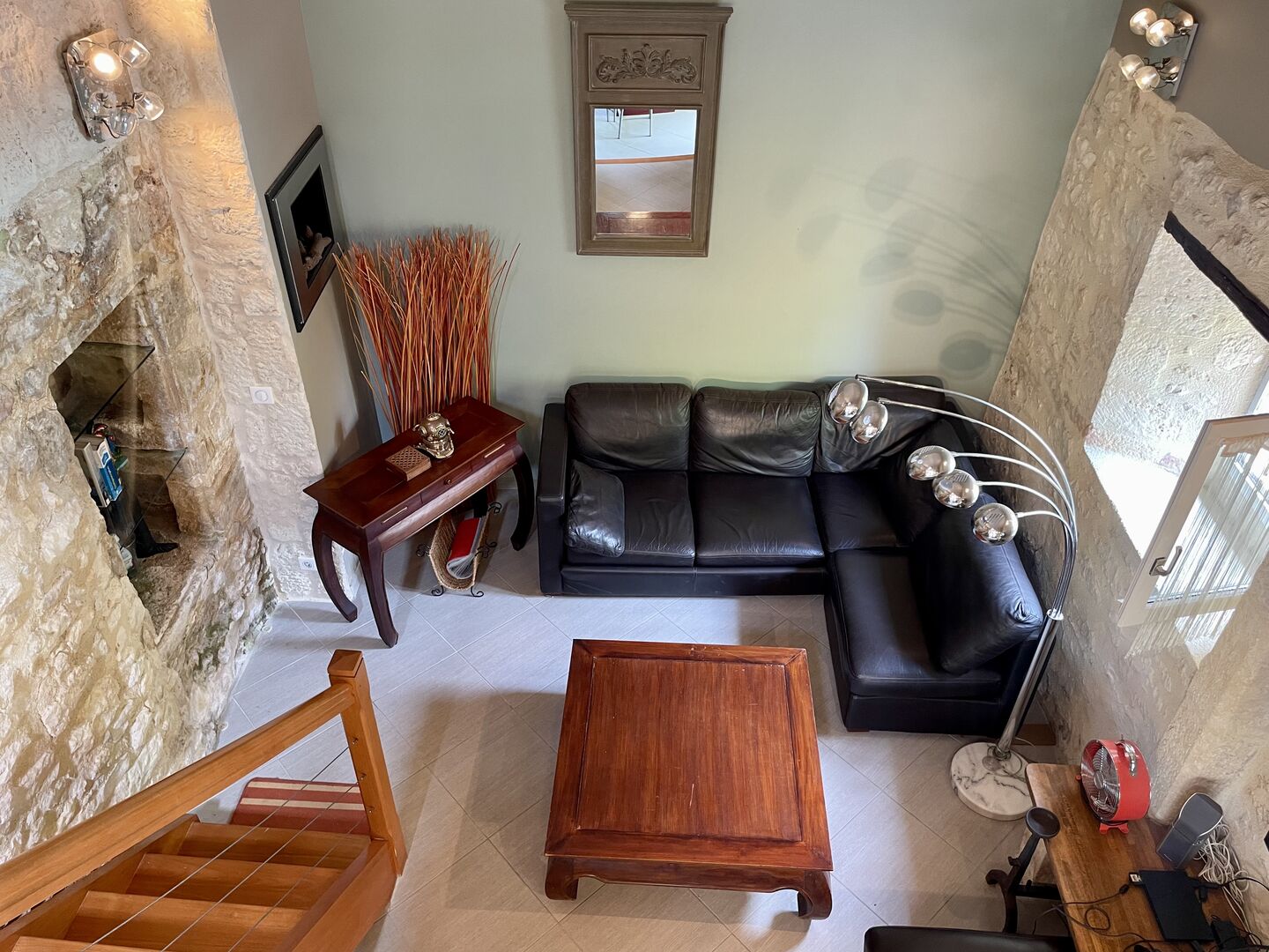 - Séjour(s) d'environ 30 m² avec cheminée et s'ouvrant sur la terrasse avec vues sur le village de MONTIGNAC.