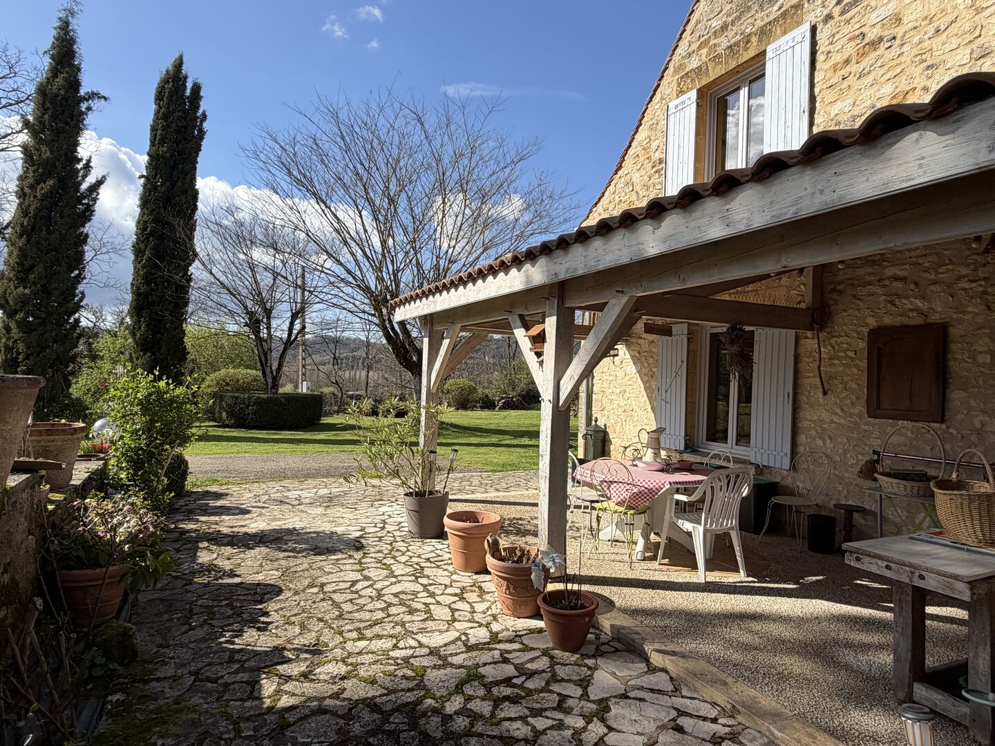 Sur une petite colline, à l’abri des regards, cette belle maison offre un cadre de vie rare et inspirant, où calme, lumière et panorama s’accordent naturellement. Située en Périgord Noir, à proximité immédiate de la rivière Dordogne (sans être en zone inondable), la propriété bénéficie d’une position dominante avec une très belle vue sur le village. Celui-ci est accessible à pied ou à vélo en traversant le pont du Garrit, agréable liaison douce entre nature et vie locale. Ici, les journées commencent avec le doux son des oiseaux et se terminent dans une ambiance feutrée, rythmée par la lumière du soir sur le village. Une maison spacieuse et bien agencée Une maison familiale où chaque espace trouve son tempo Au rez-de-chaussée : • Entrée accueillante, introduction parfaite à la visite • Salon chaleureux, propice aux moments de partage • Salle à manger conviviale, idéale pour les grandes tablées • Cuisine indépendante • Salle de bains • Toilettes séparées • Buanderie À l’étage : • Cinq chambres, véritables espaces de repos et d’inspiration • Salle de bains • Toilettes séparées • Palier pouvant accueillir un coin lecture, écriture ou musique Un extérieur en harmonie avec la nature Le grand jardin entoure la maison et offre un sentiment d’intimité rare. Le chant du vent dans les arbres accompagne les journées d’été, tandis que la piscine devient un lieu de détente où le temps semble ralentir, face à la vue dégagée sur le village. Une maison qui résonne juste Les propriétaires ont trouvé ici un lieu où la voix se pose naturellement, où le silence a toute sa place et où chaque pièce semble avoir sa propre acoustique. Une maison pensée pour celles et ceux qui recherchent un cadre de vie inspirant, loin du tumulte, mais proche de l’essentiel. Un bien rare en Dordogne, alliant tranquillité, proximité du village, piscine, jardin et vue, idéal pour une résidence principale ou secondaire dans le secteur recherché du Périgord Noir. À découvrir sans tarder. Les informations sur les risques auxquels ce bien est exposé sont disponibles sur le site Géorisques www.georisques.gouv.fr